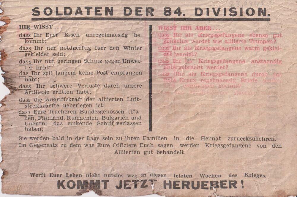 Pamflet: "Soldaten der 84. Division/Wie ihr kommen s...
