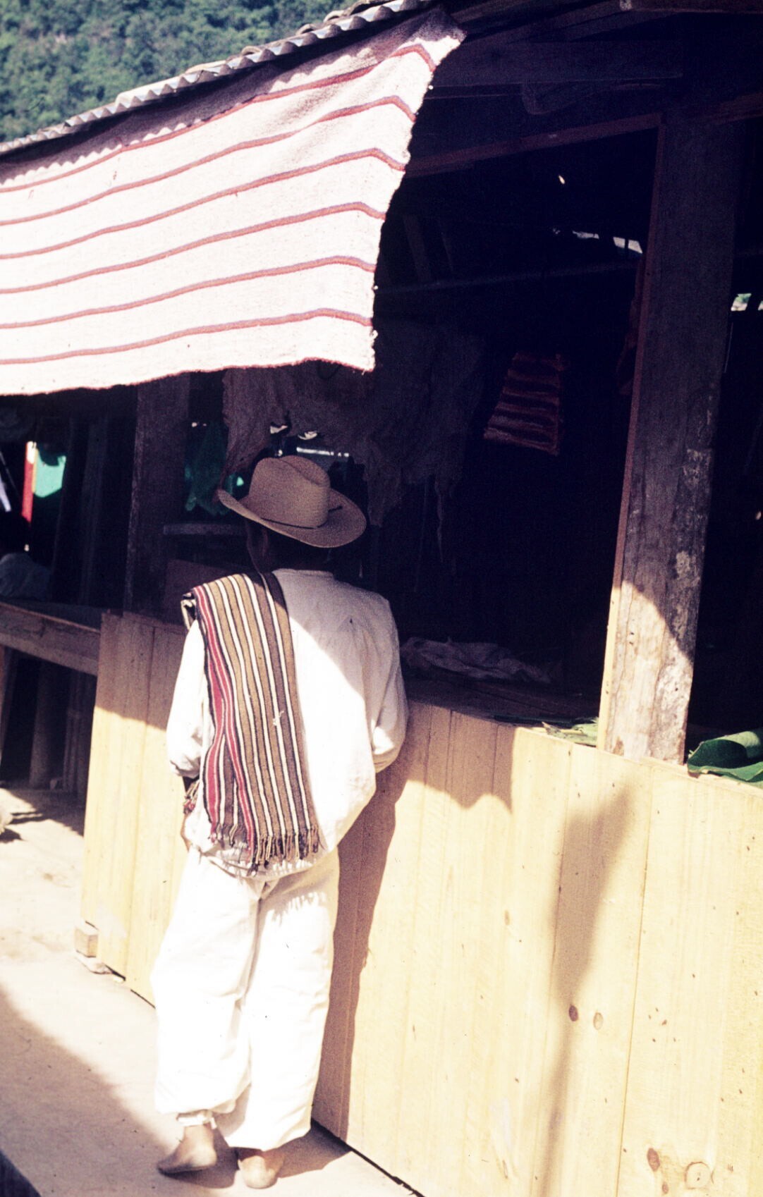mannen in "manga" (poncho) op markt