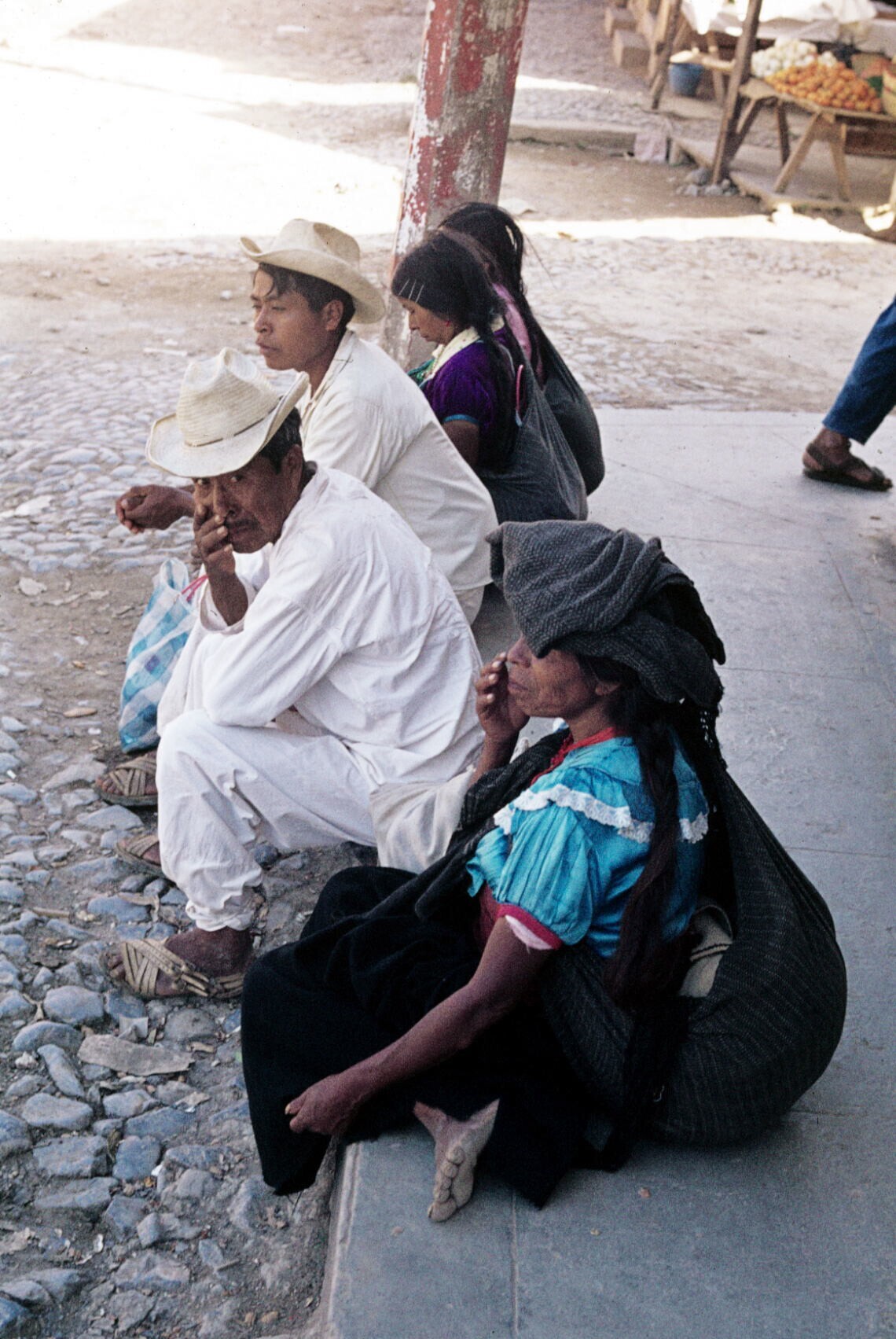 mannen in traje indio en vrouw met rebozo opgevouwen...
