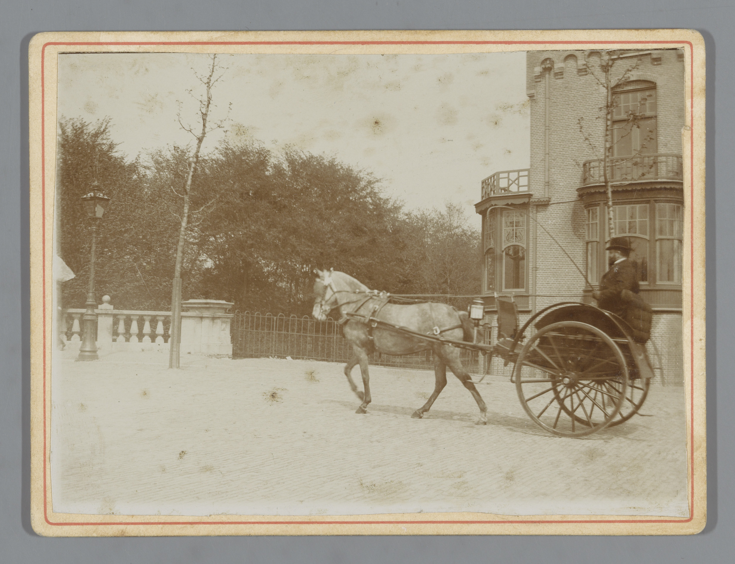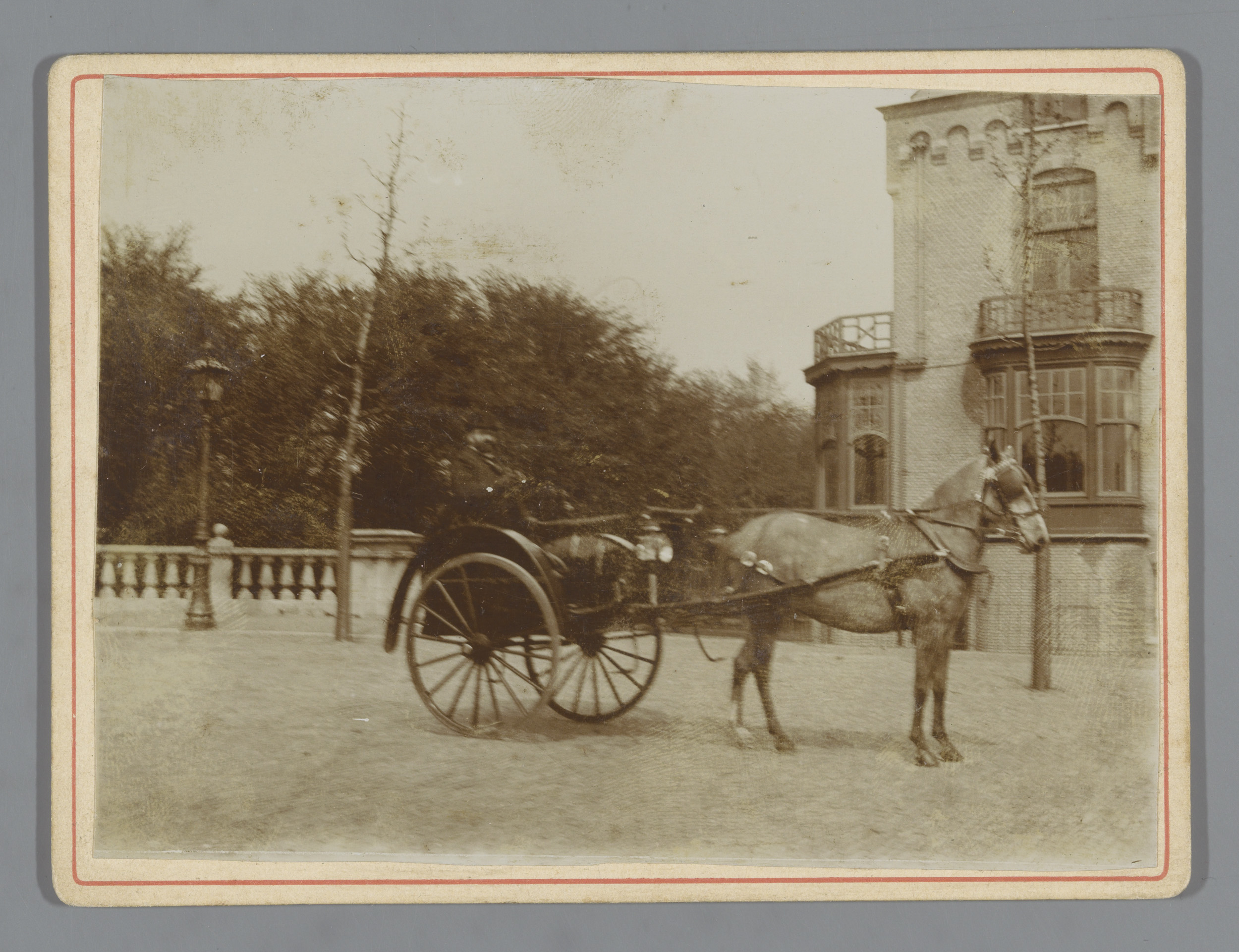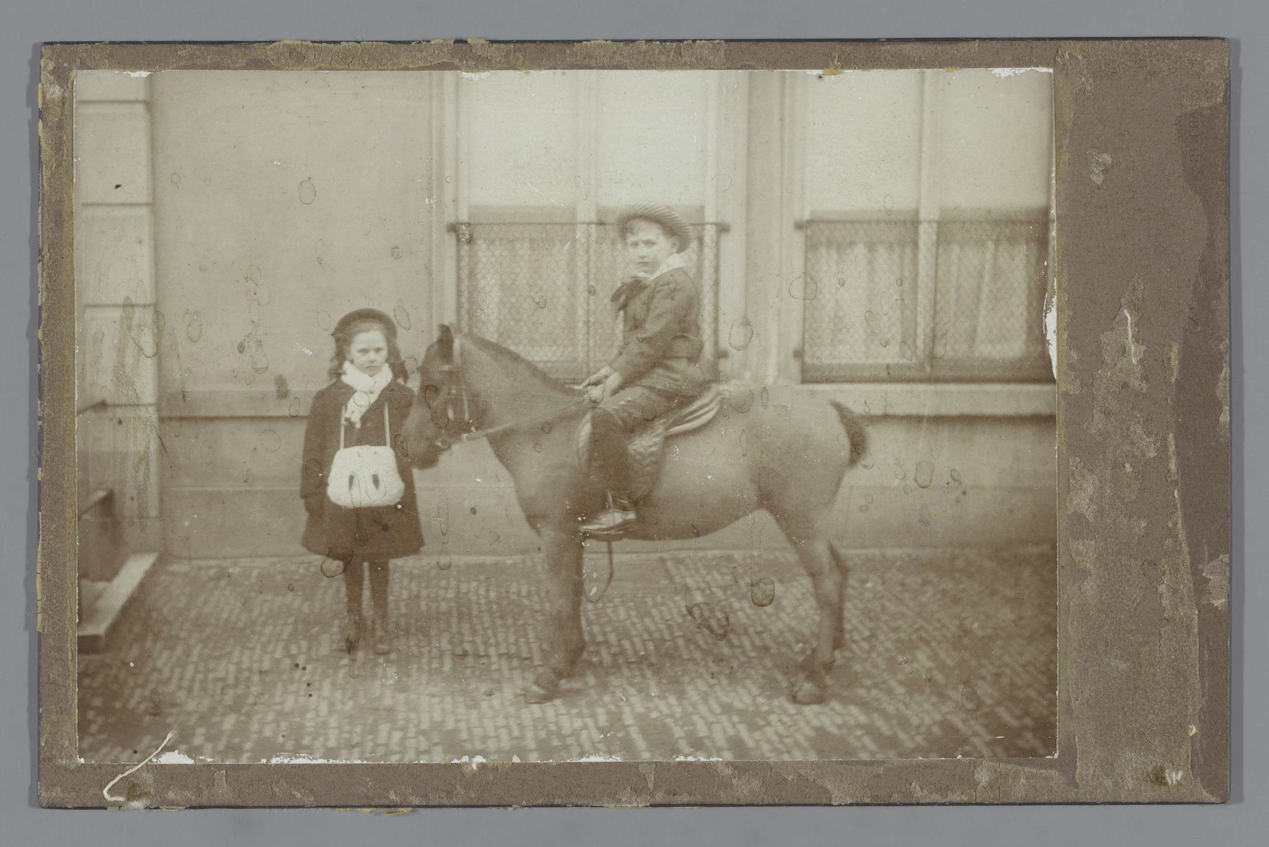 Jongen met een paard voor een huis (vermoedelijk) te...