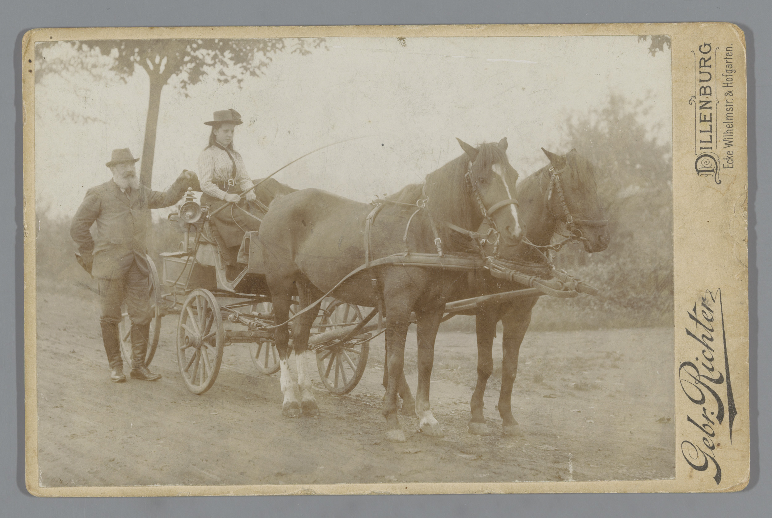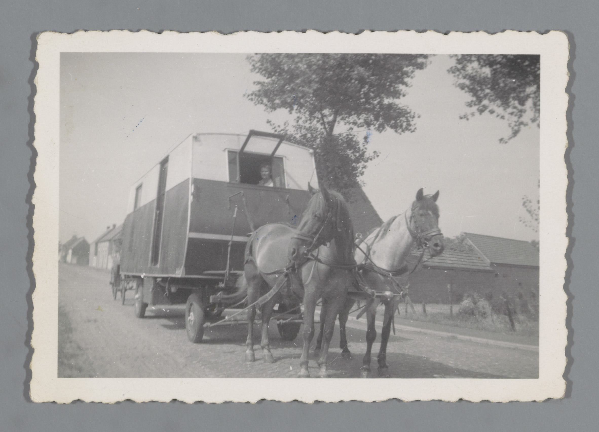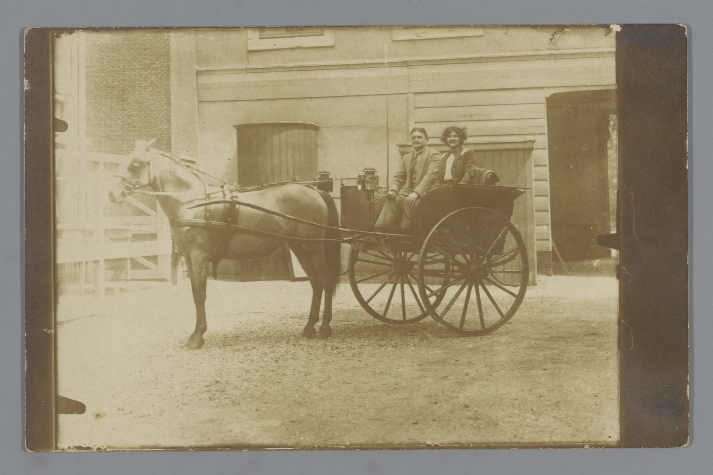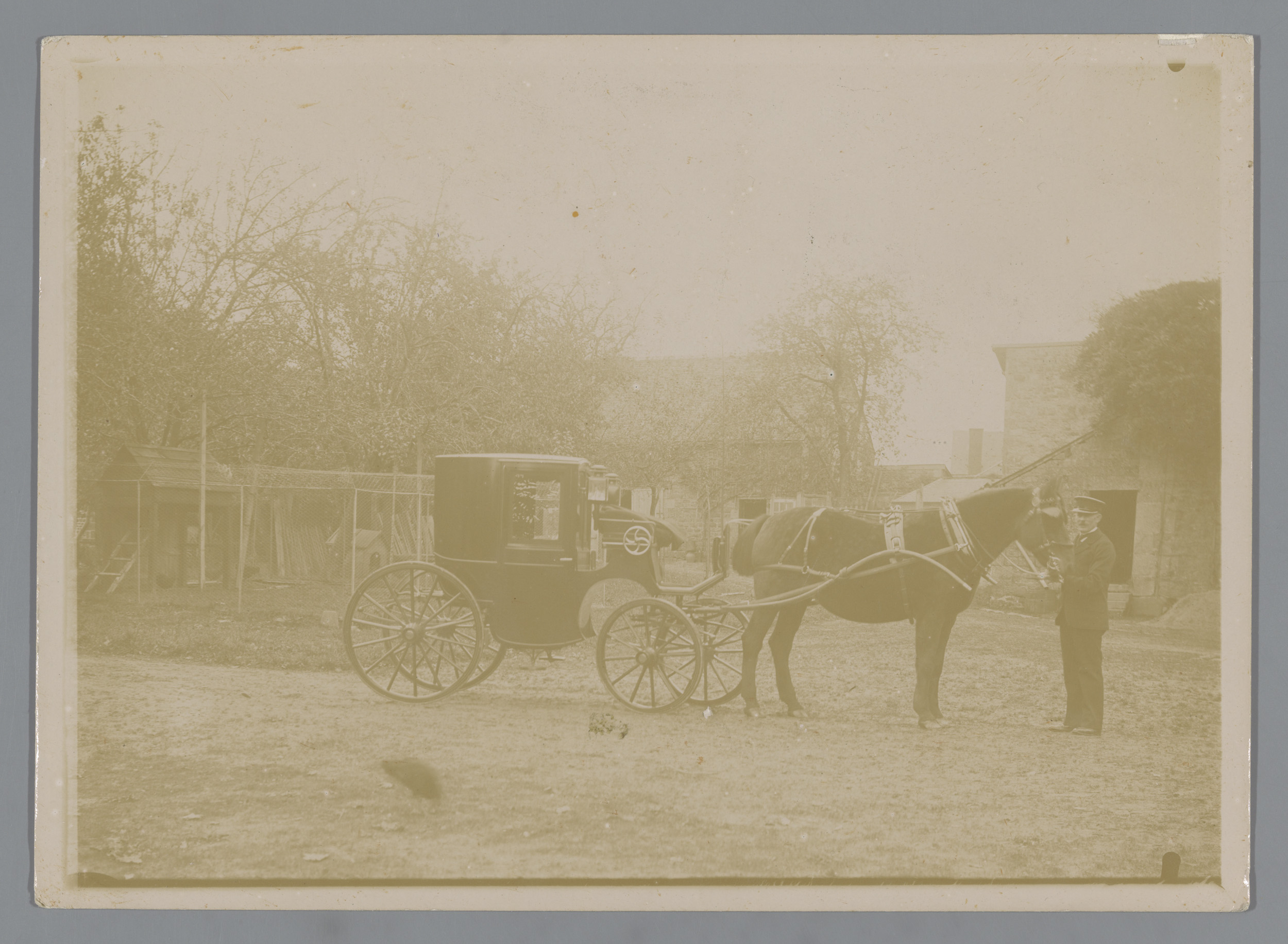 Jongen met een paard voor een huis (vermoedelijk) te...
