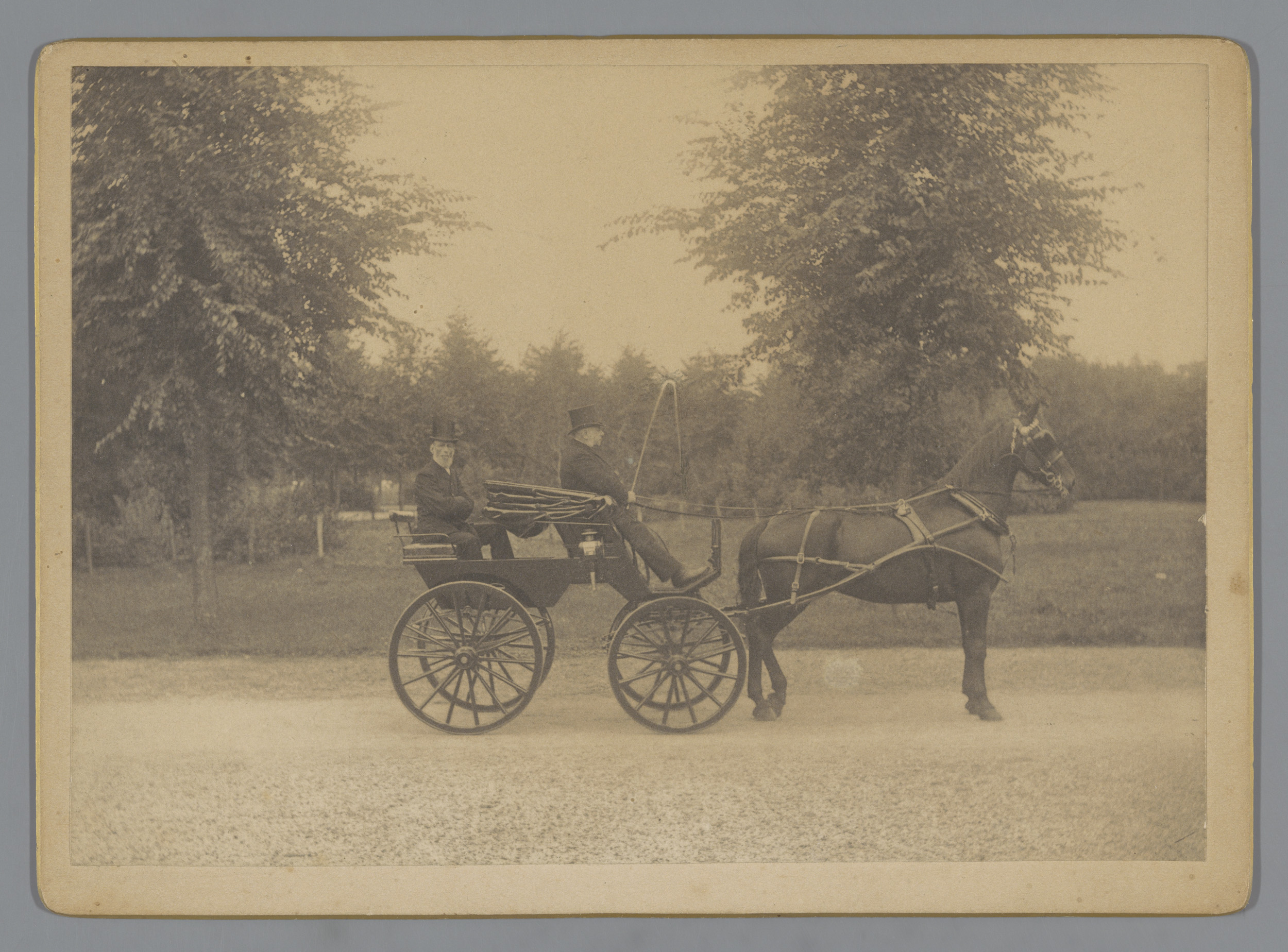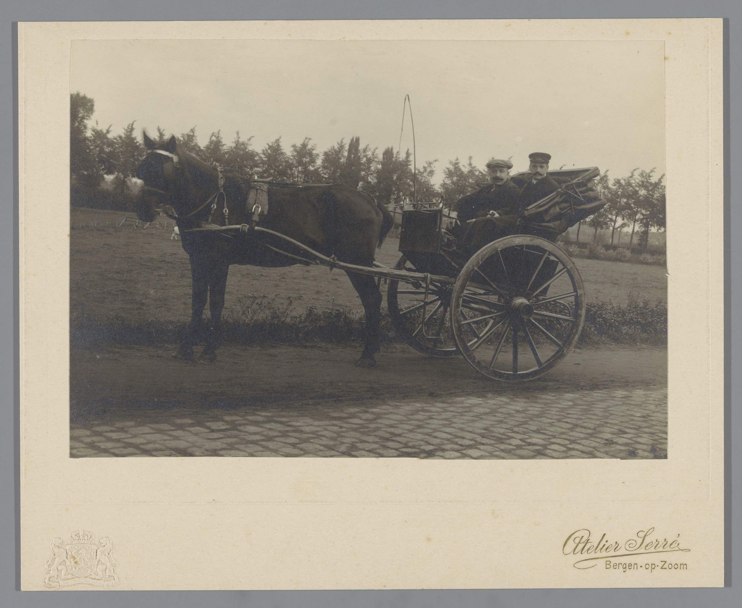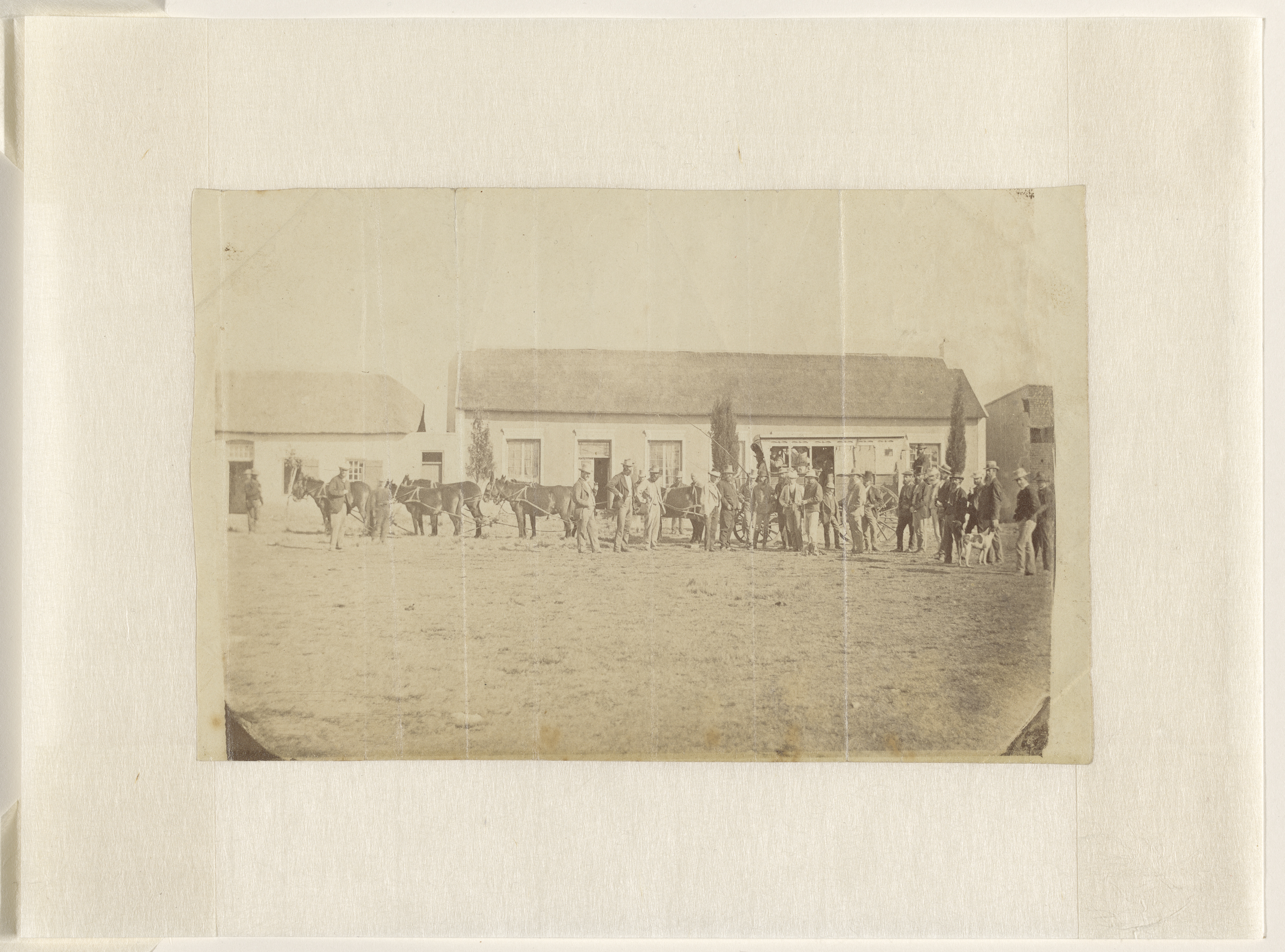 Groep mannen met paard-en-wagens, mogelijk in de Ver...