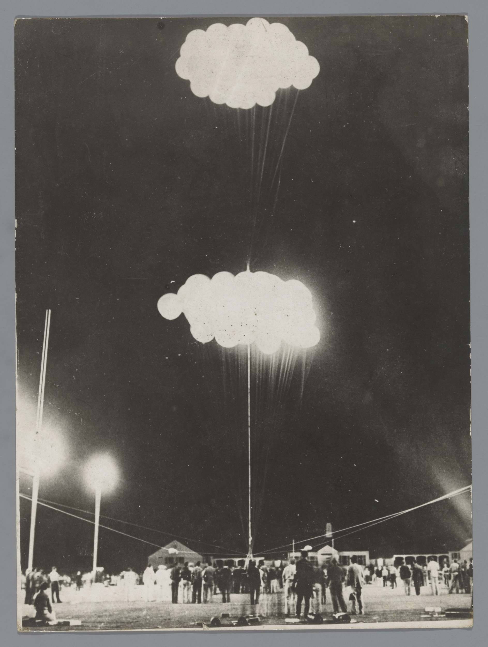 Opstelling van luchtballonnen en vliegtuigen tijdens...