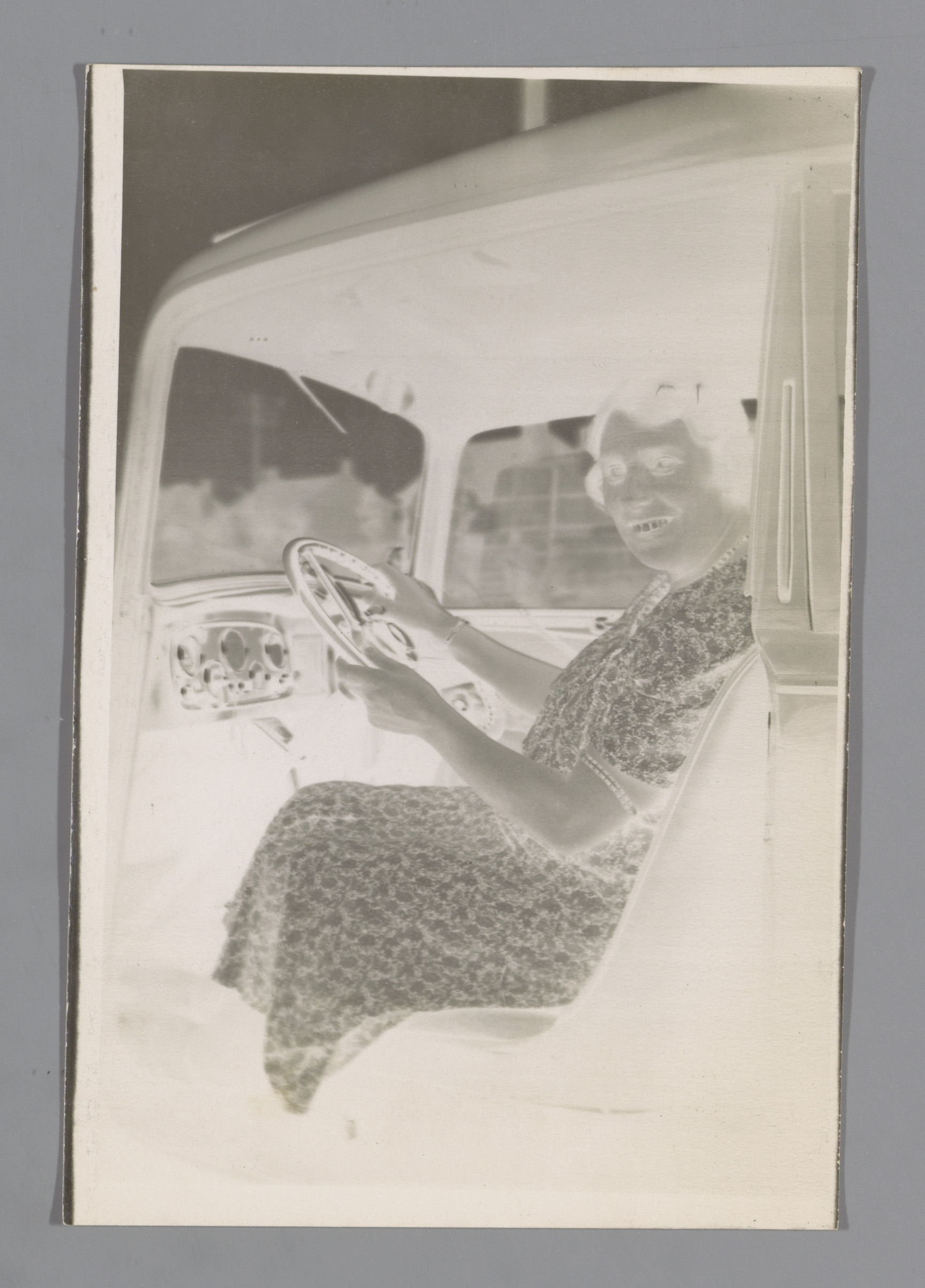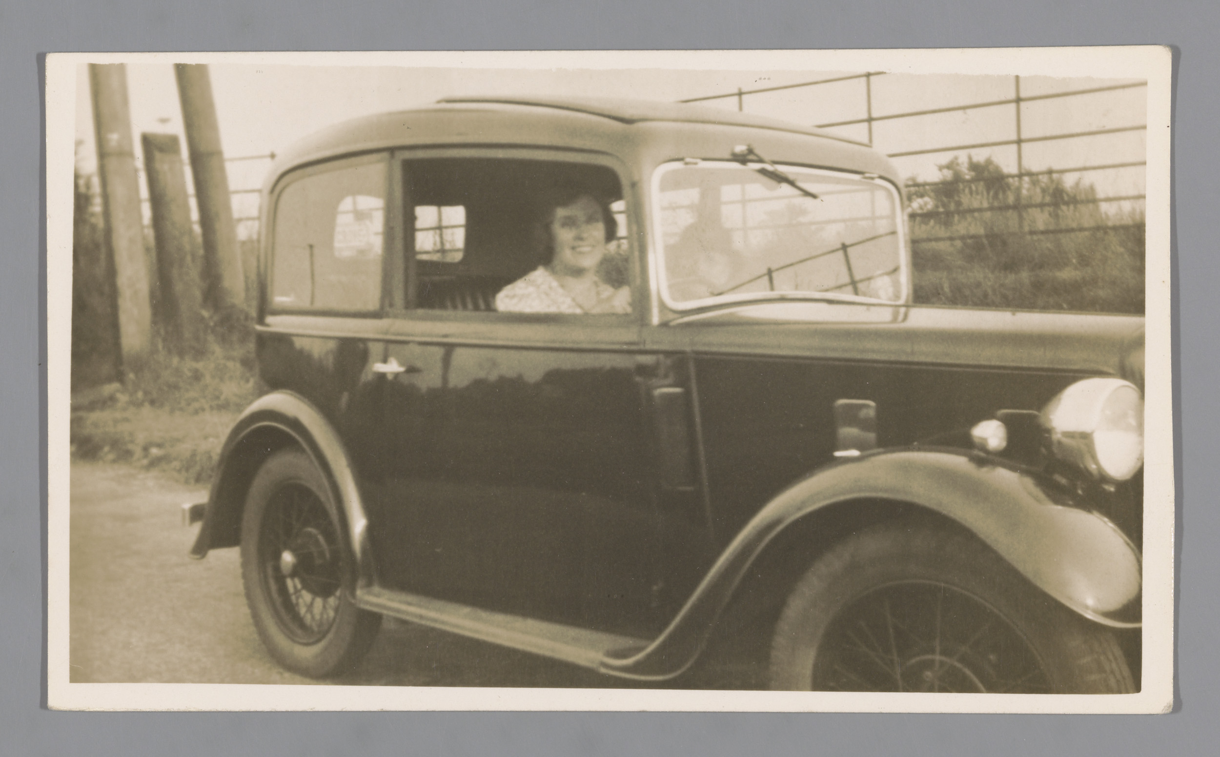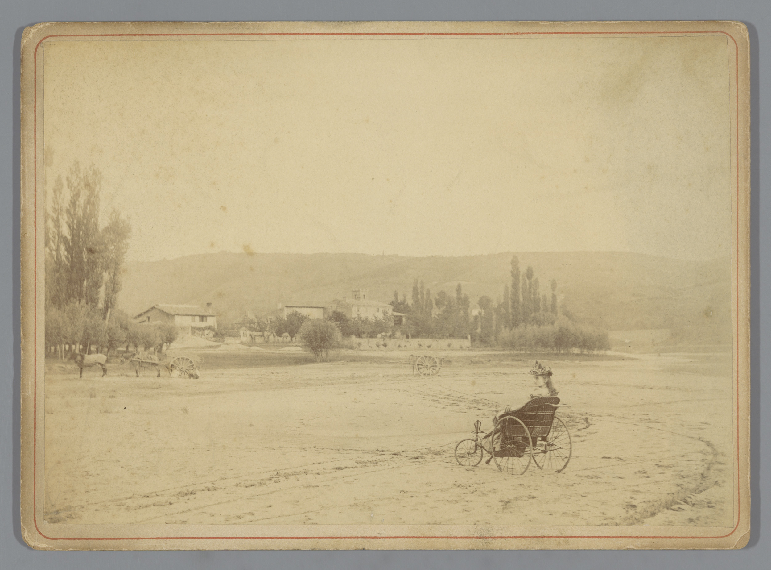 Meisje in een rijtuig (vermoedelijk) op een strand