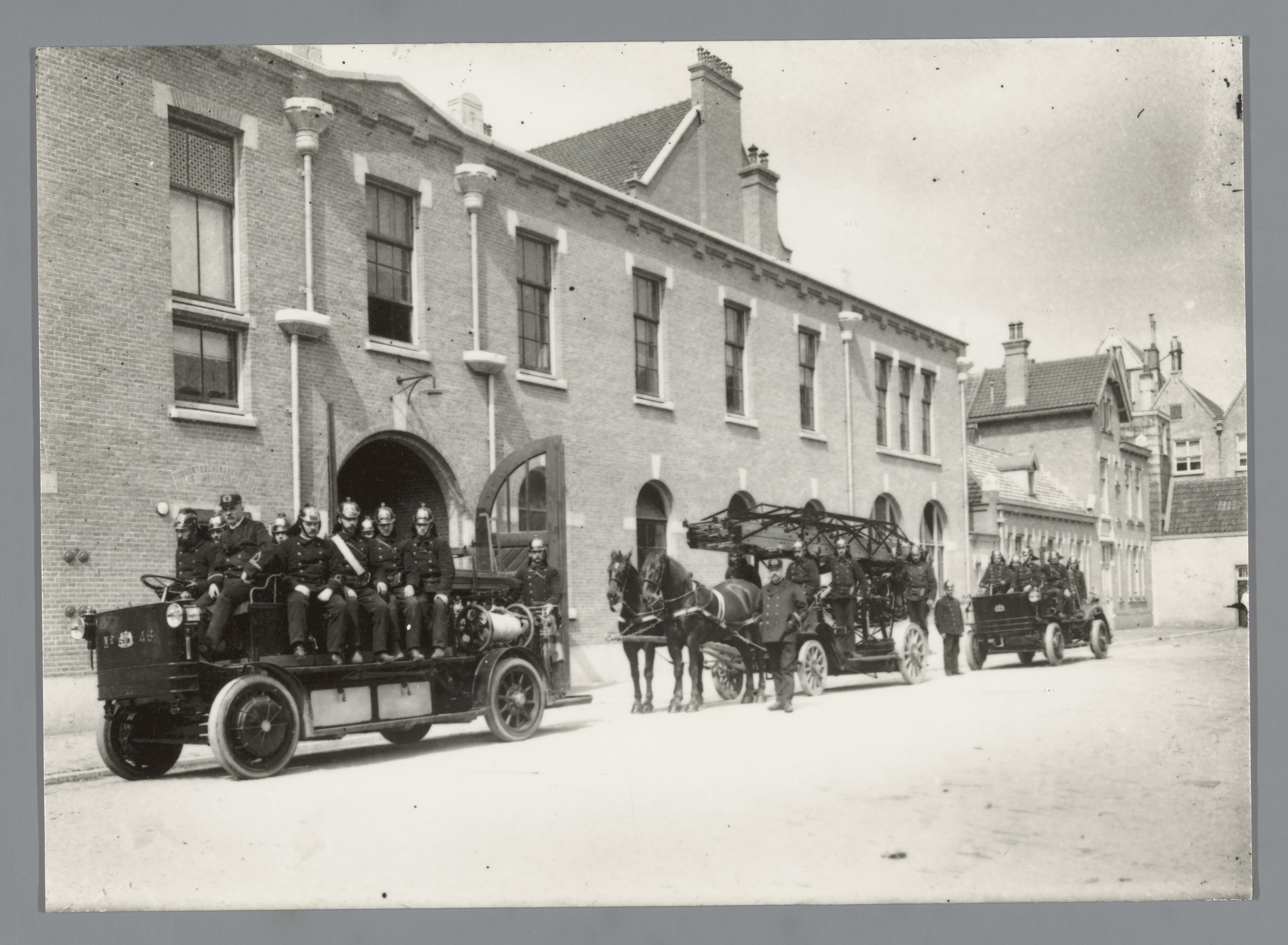 Opstelling van wagens van de brandweer (vermoedelijk...