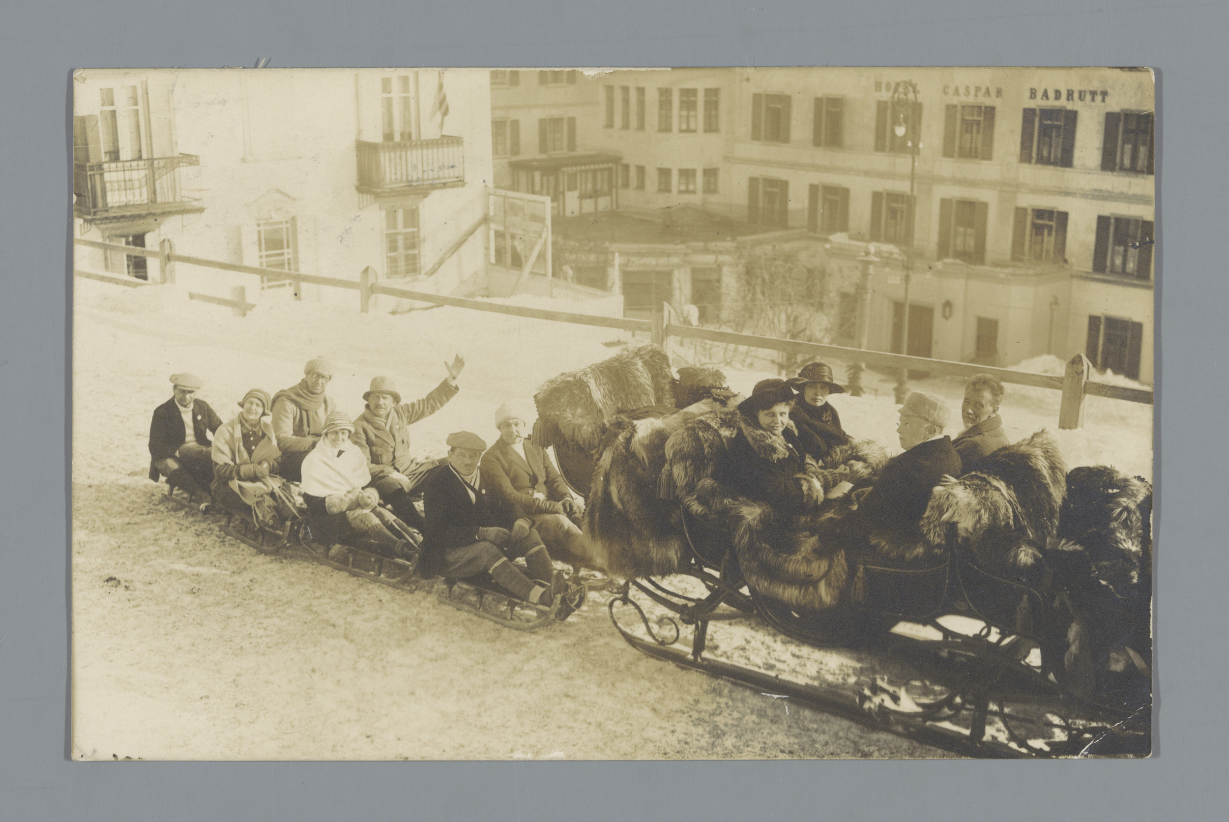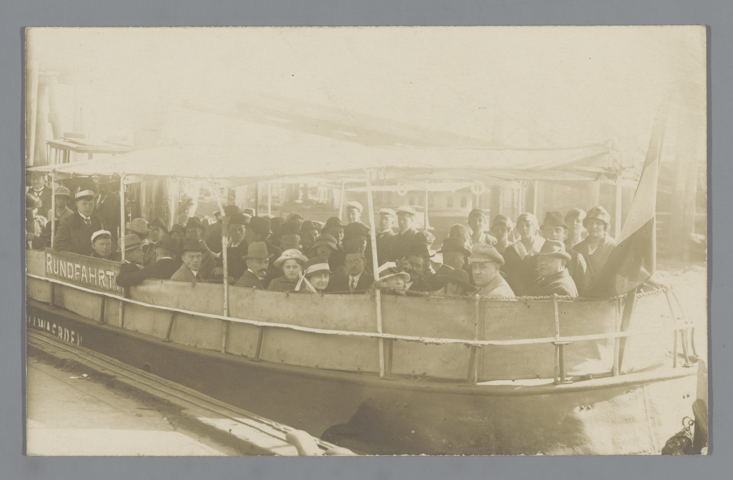 Gezelschap in een rondvaartboot (vermoedelijk) te Le...