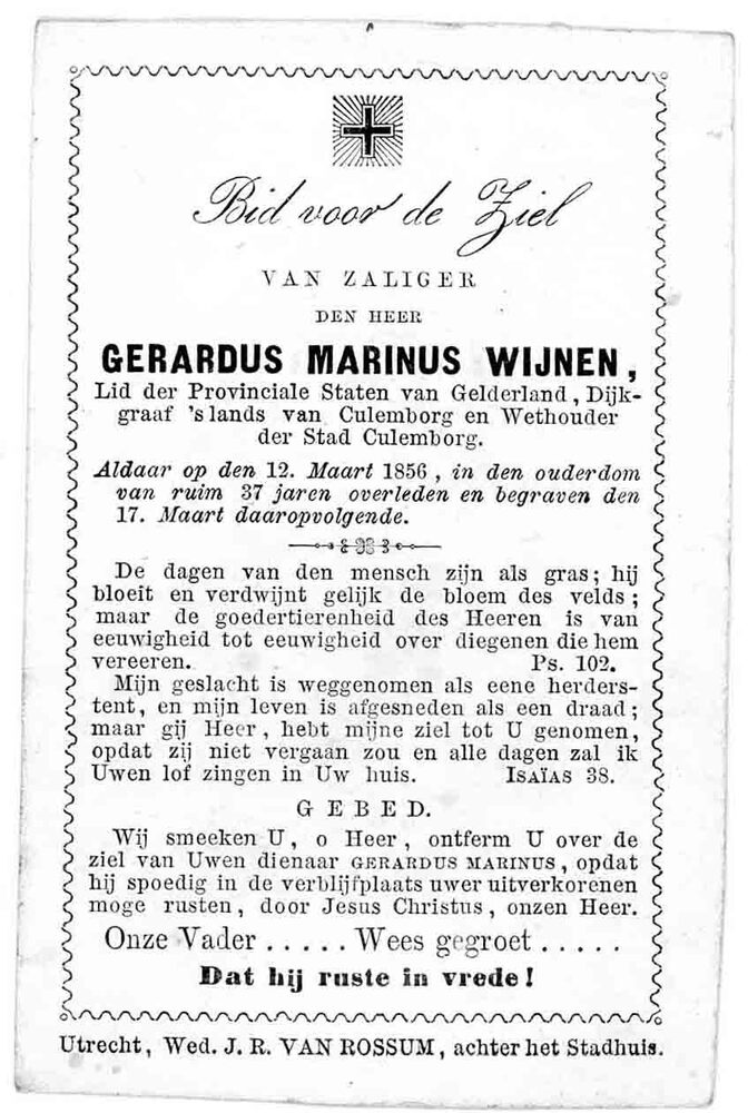 bidprent voor Gerardus Marinus Wijnen. Geboren 1819,...