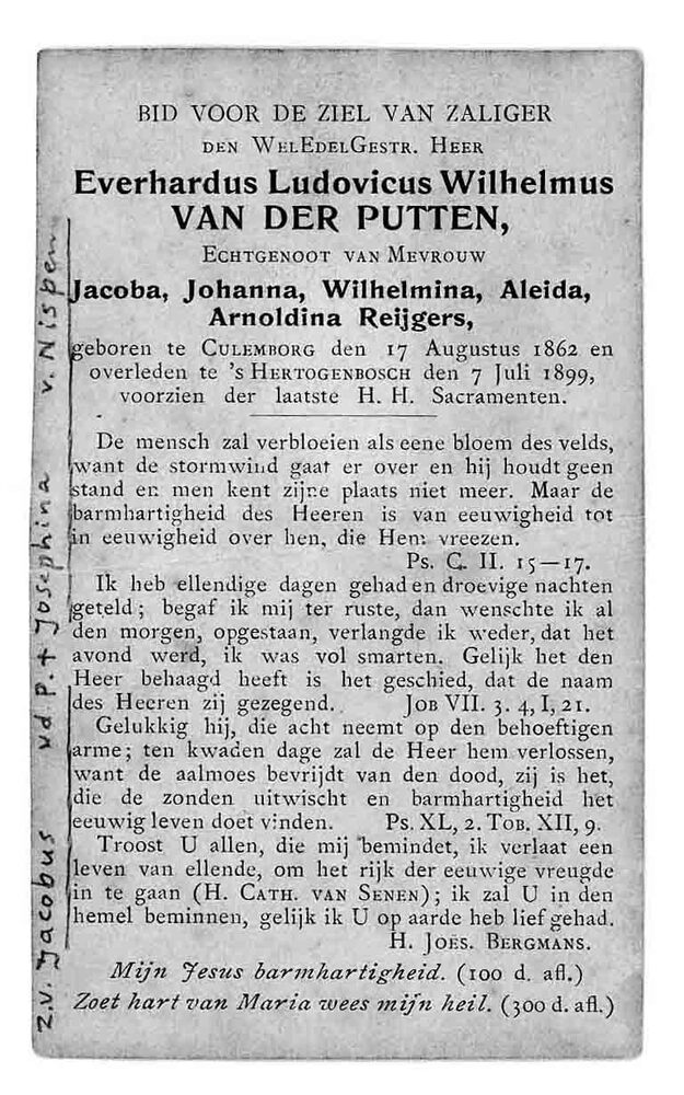 bidprent voor Everhardus Ludovicus Wilhelmus van der...