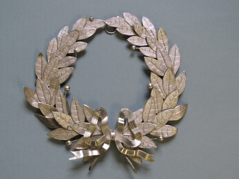 krans van zilverkleurig metaal, prijs uitgereikt aan...