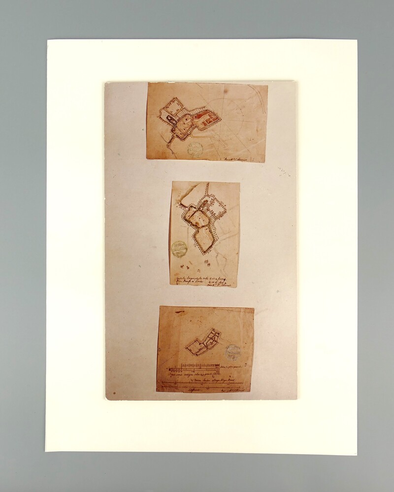 Plattegronden, op papier getekend en ingekleurd, voo...