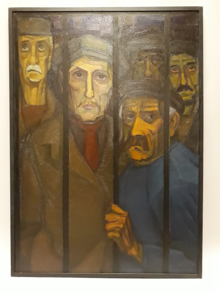 Werklozen (Werkstakers, Arbeiders achter traliehek)