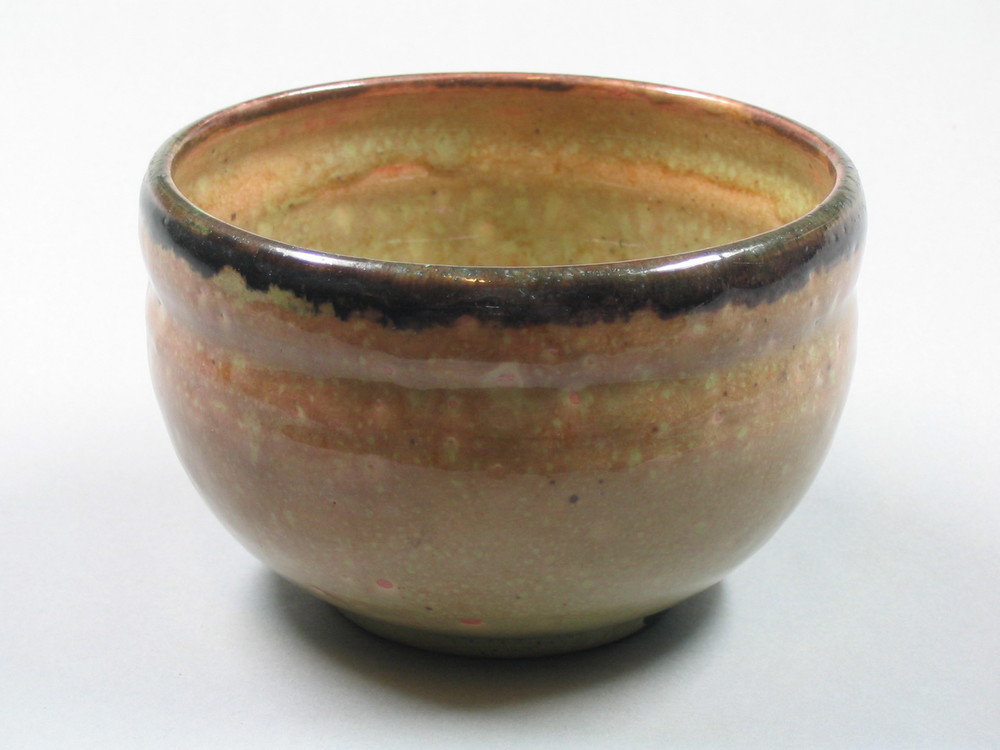 kom van keramiek, bruin-roze-beige met donkerbruin-z...