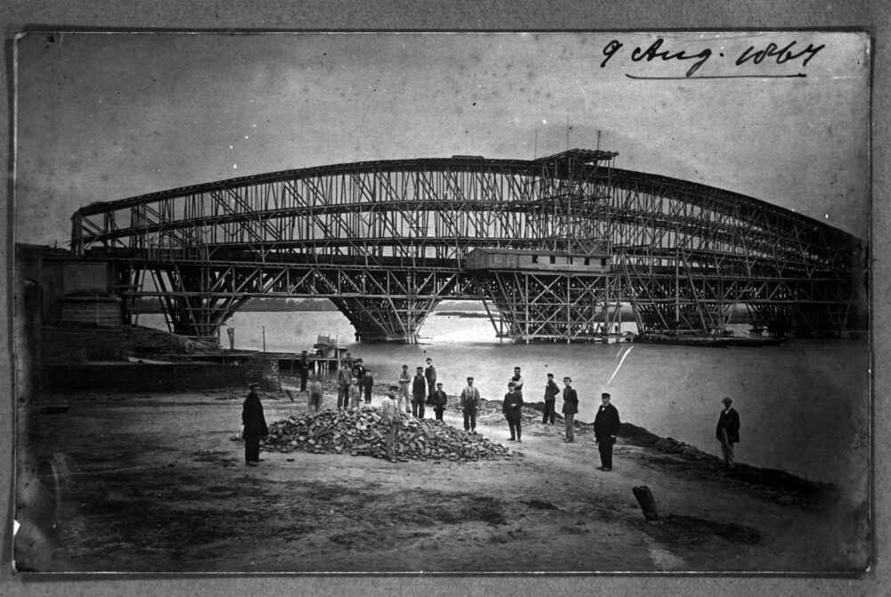 Litho van spoorbrug te Kuilenburg.