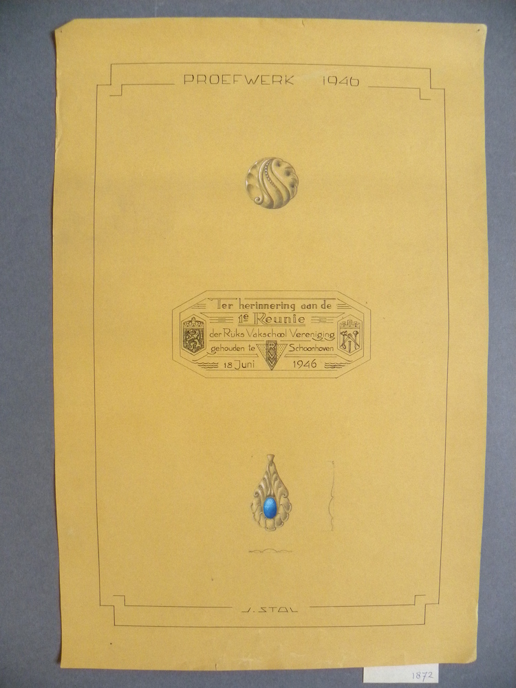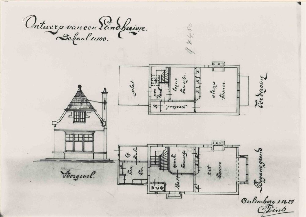 Tekeningen op papier voorstellende ontwerpen door J....