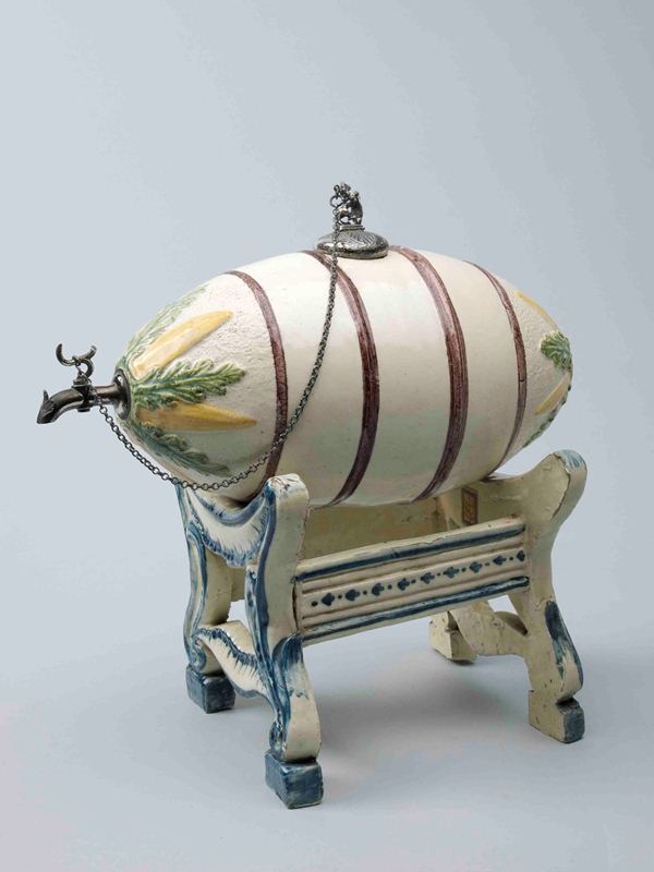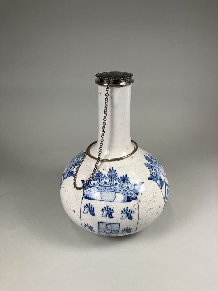 Eivormig likeurvaatje van Keuls aardewerk met zilver...