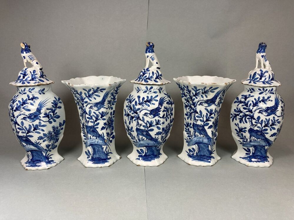 Kaststel van blauw Delfts aardewerk bestaande uit dr...