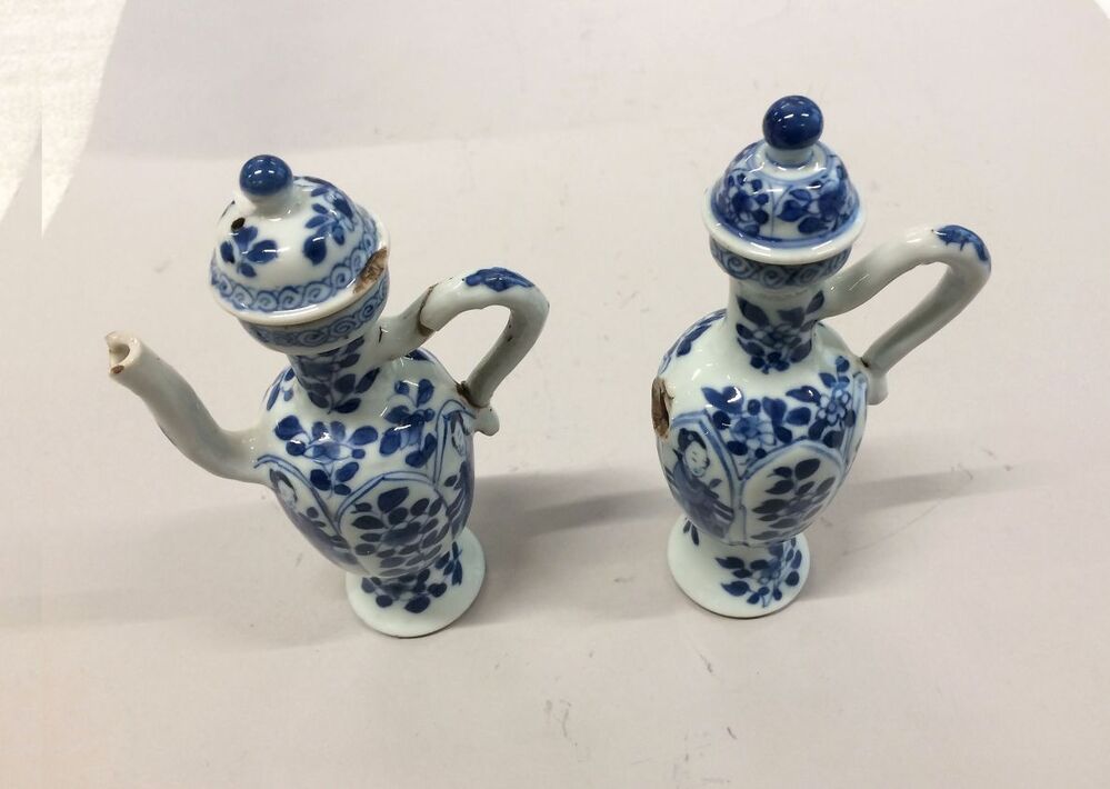 Twee kleine theepotjes met dekseltjes van Chinees po...