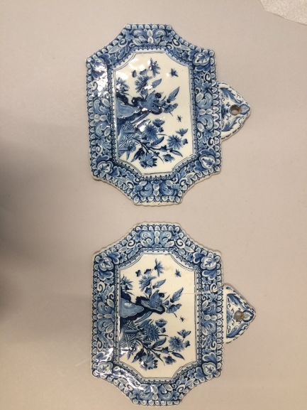 Twee rechthoekige plaquettes van Delfts aardewerk me...