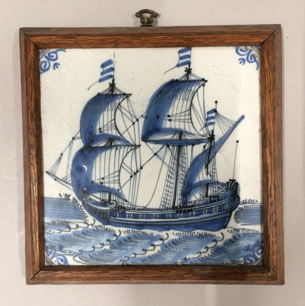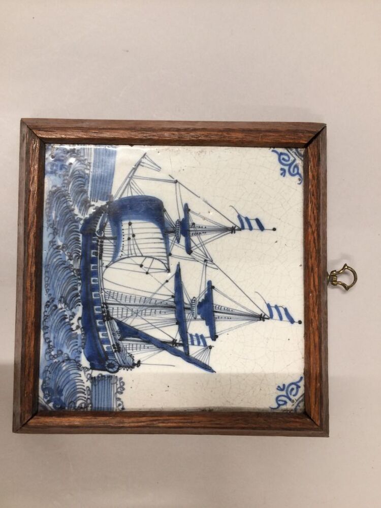 Twee Delftse tegels met vechtende ruiter in cirkel i...