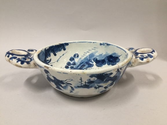 Driedriepuntschaaltje van blauw Delfts aardewerk