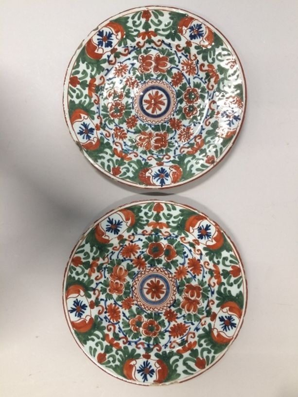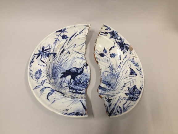 In twee delen gebroken diep bord van Delfts blauw aa...