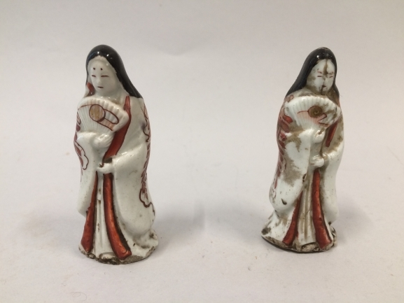 Twee beeldjes van leeuwtjes of hondjes van wit Chine...