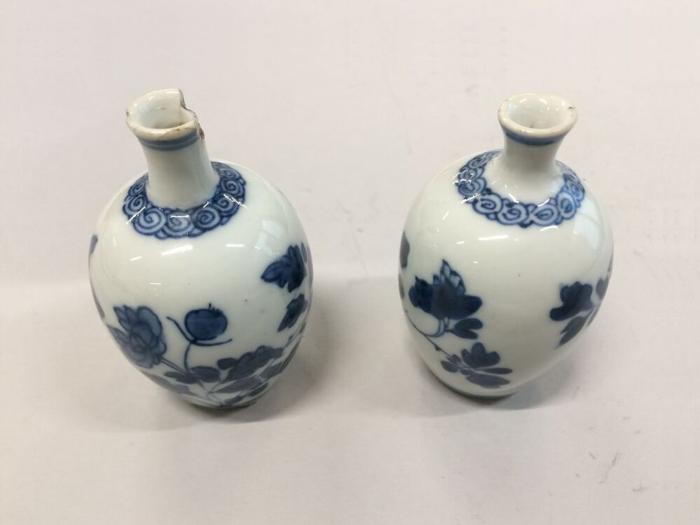 Vijf kleine knobbelvaasjes van blauw Chinees porselein