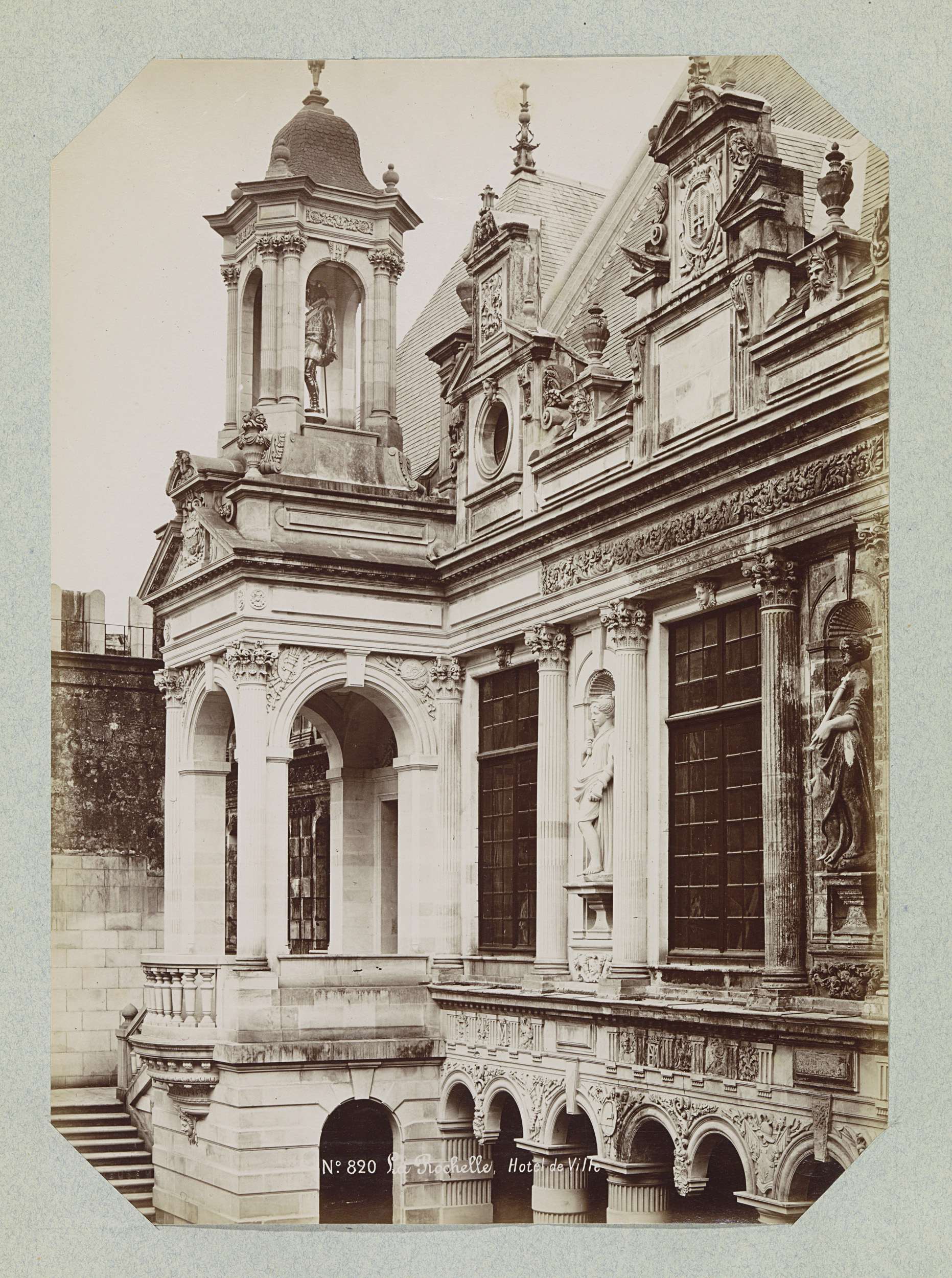 Gevel, toren en zuilengalerij van het stadhuis van L...