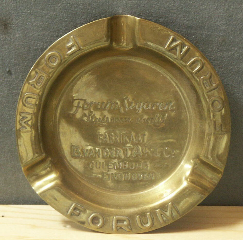 Asbak van messing met reclame voor Forum sigaren.