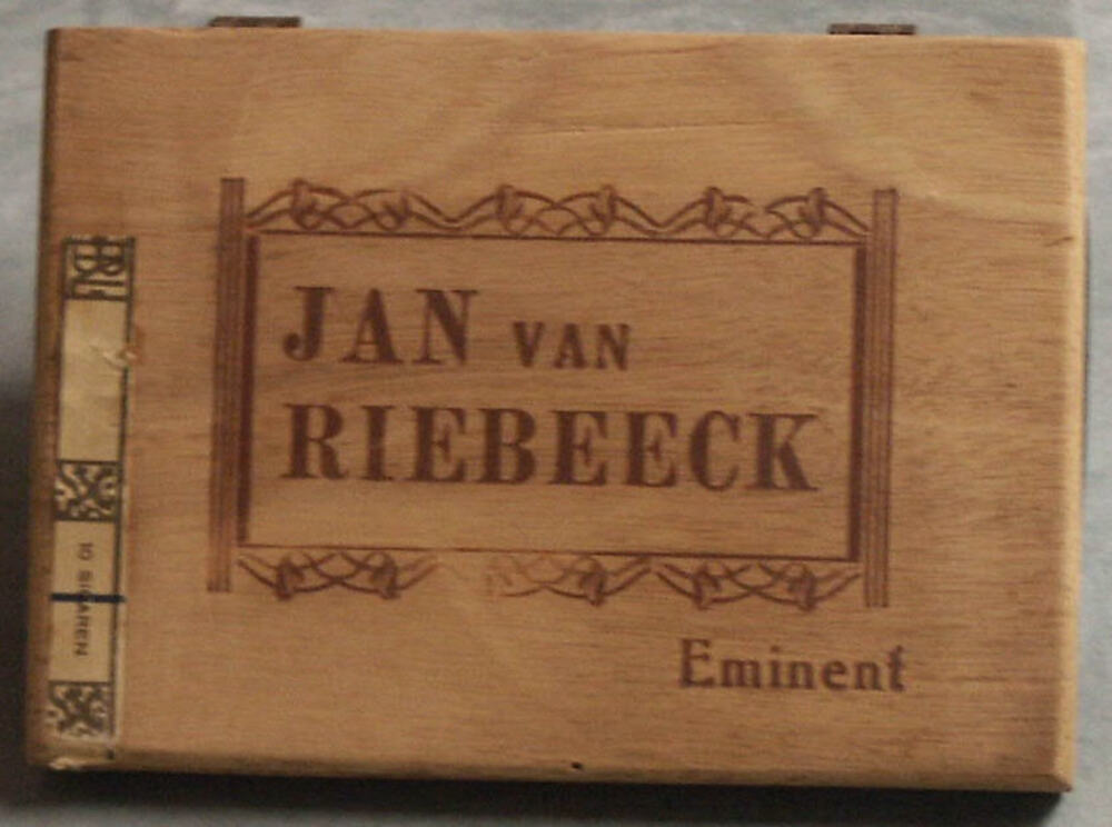 sigarenkist van hout met opschrift Jan van Riebeeck ...