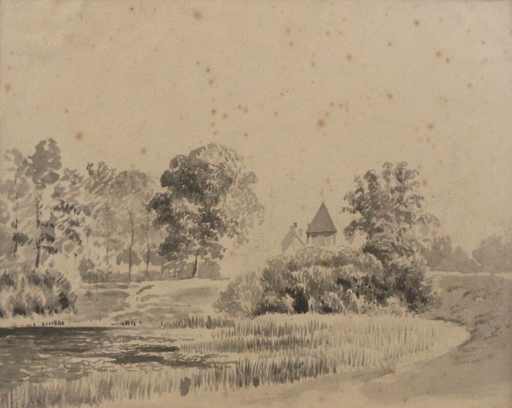 aquarel voorstellende gezicht op Culemborg vanaf de ...
