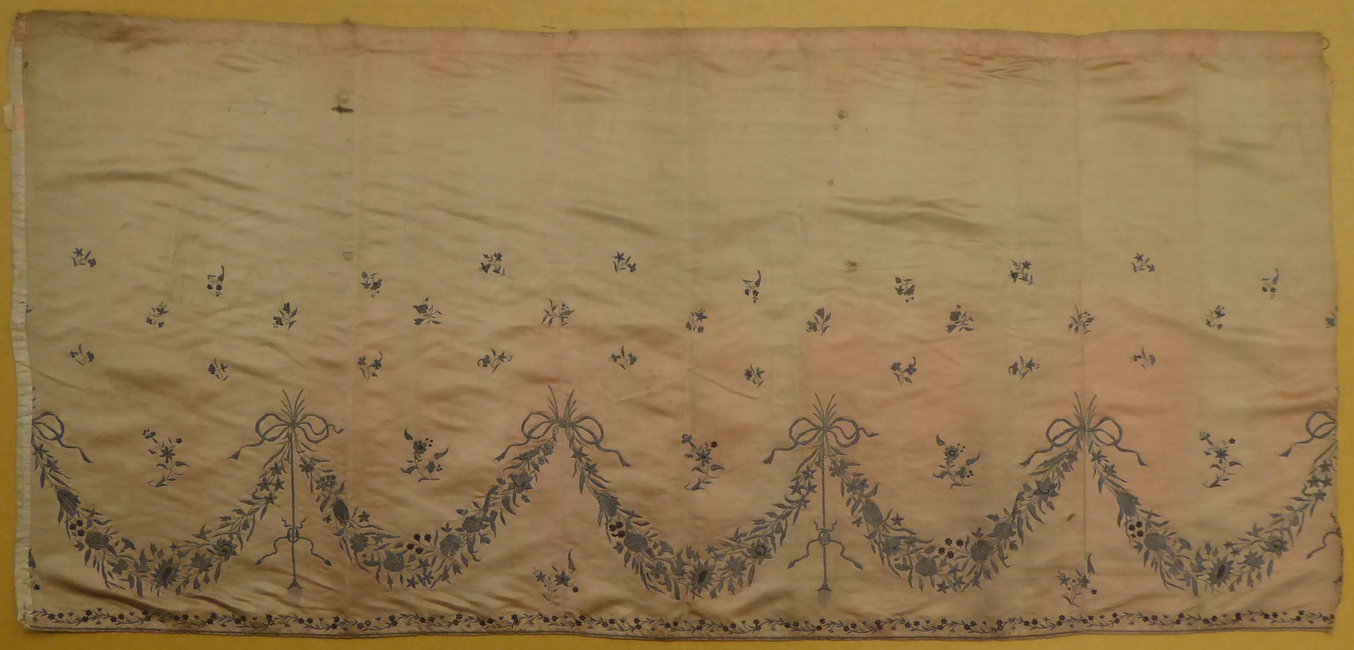 Blauwgroen kelkvelum van lampas met bloemranken, met...