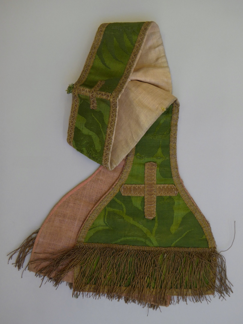 Groen kelkvelum, ongevoerd, met breed galon en IHS