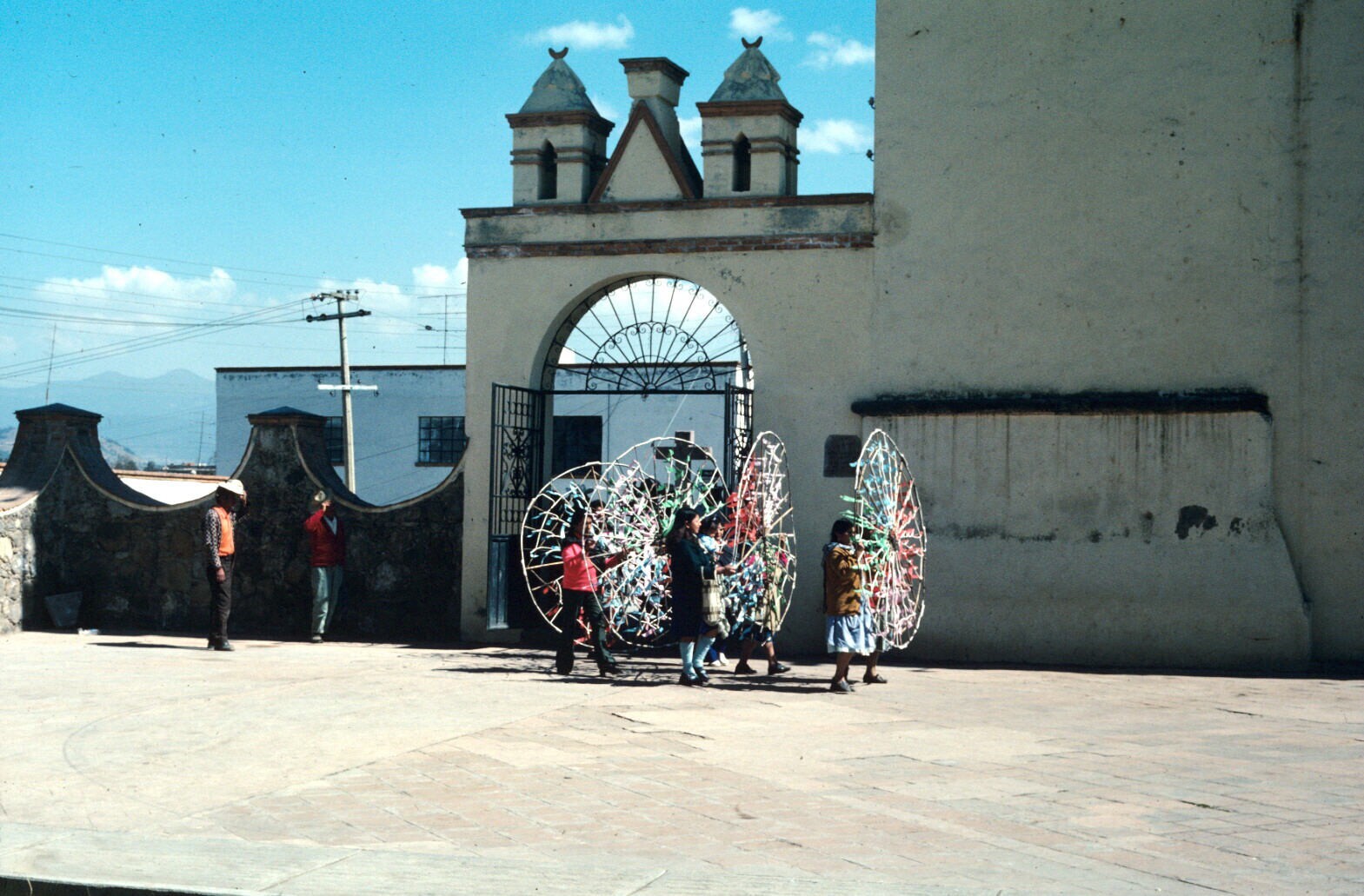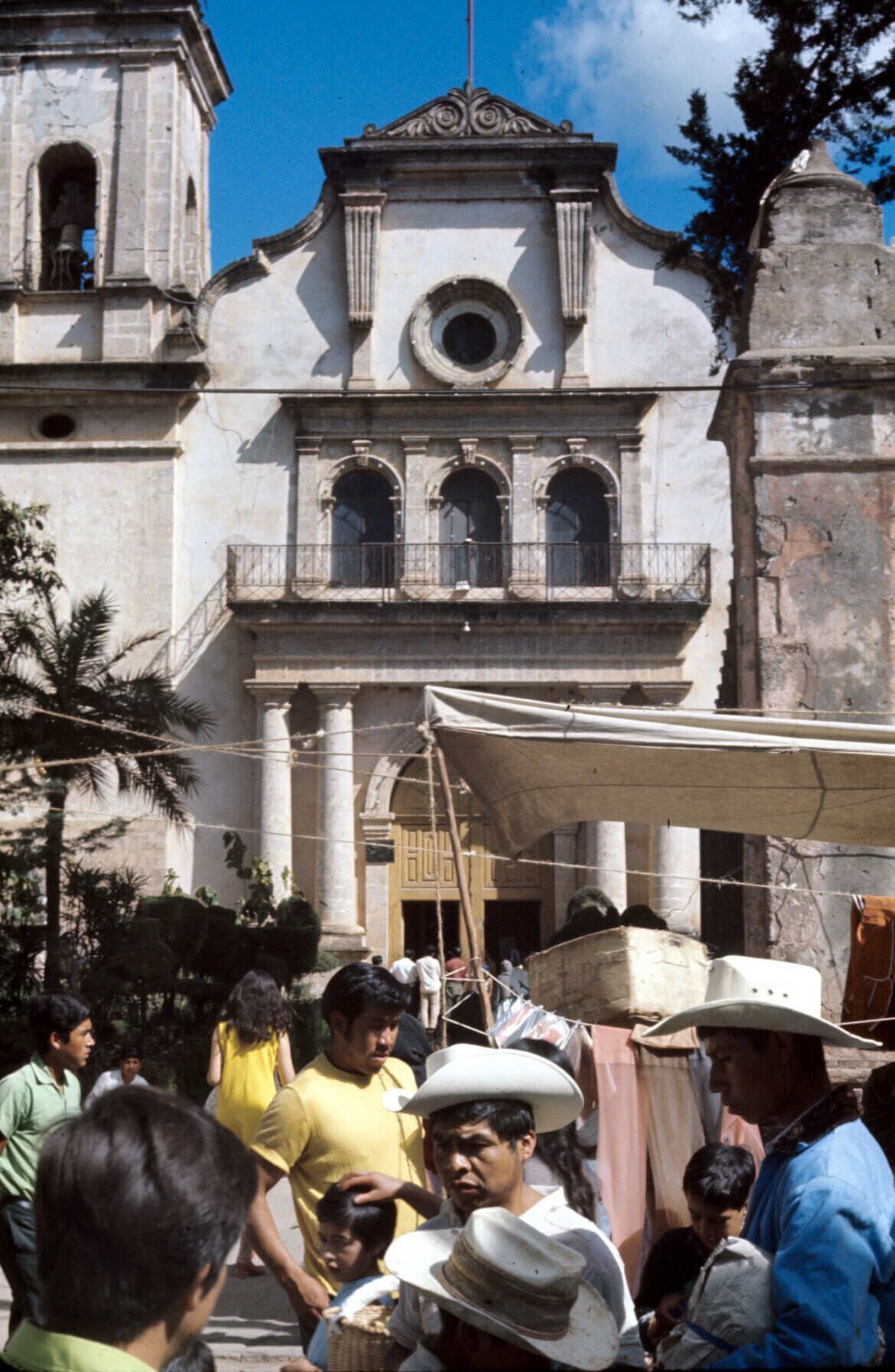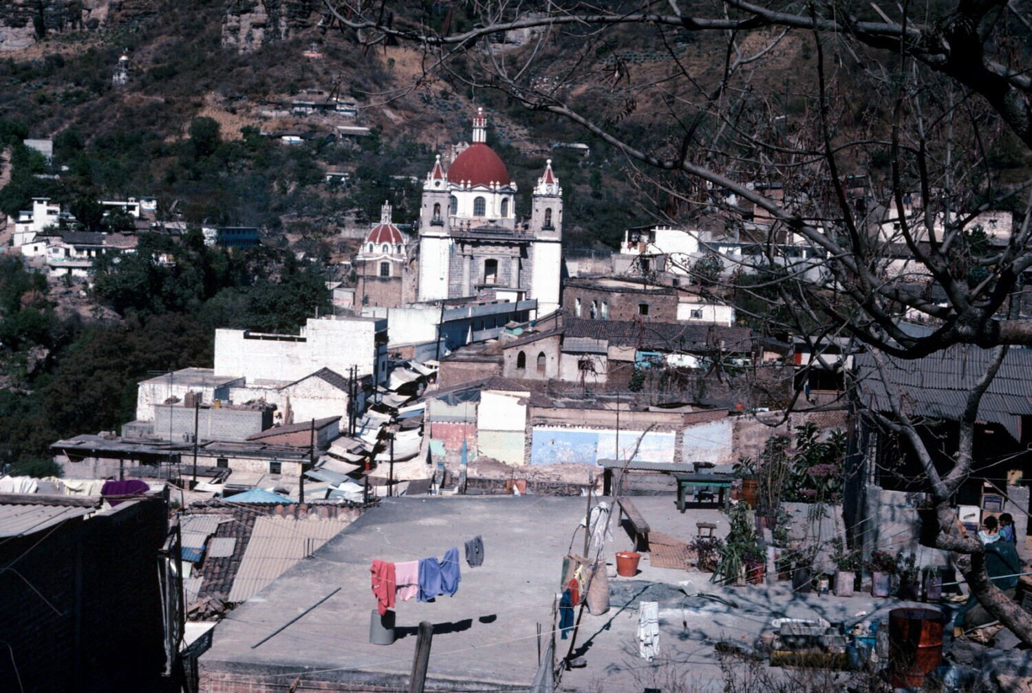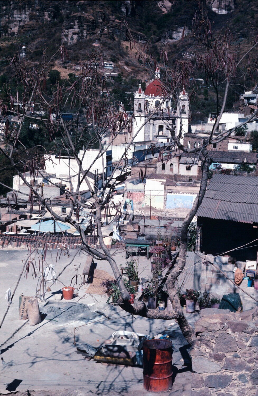 gezicht op de plaats, met kerk van 'El Señor de Chalma'