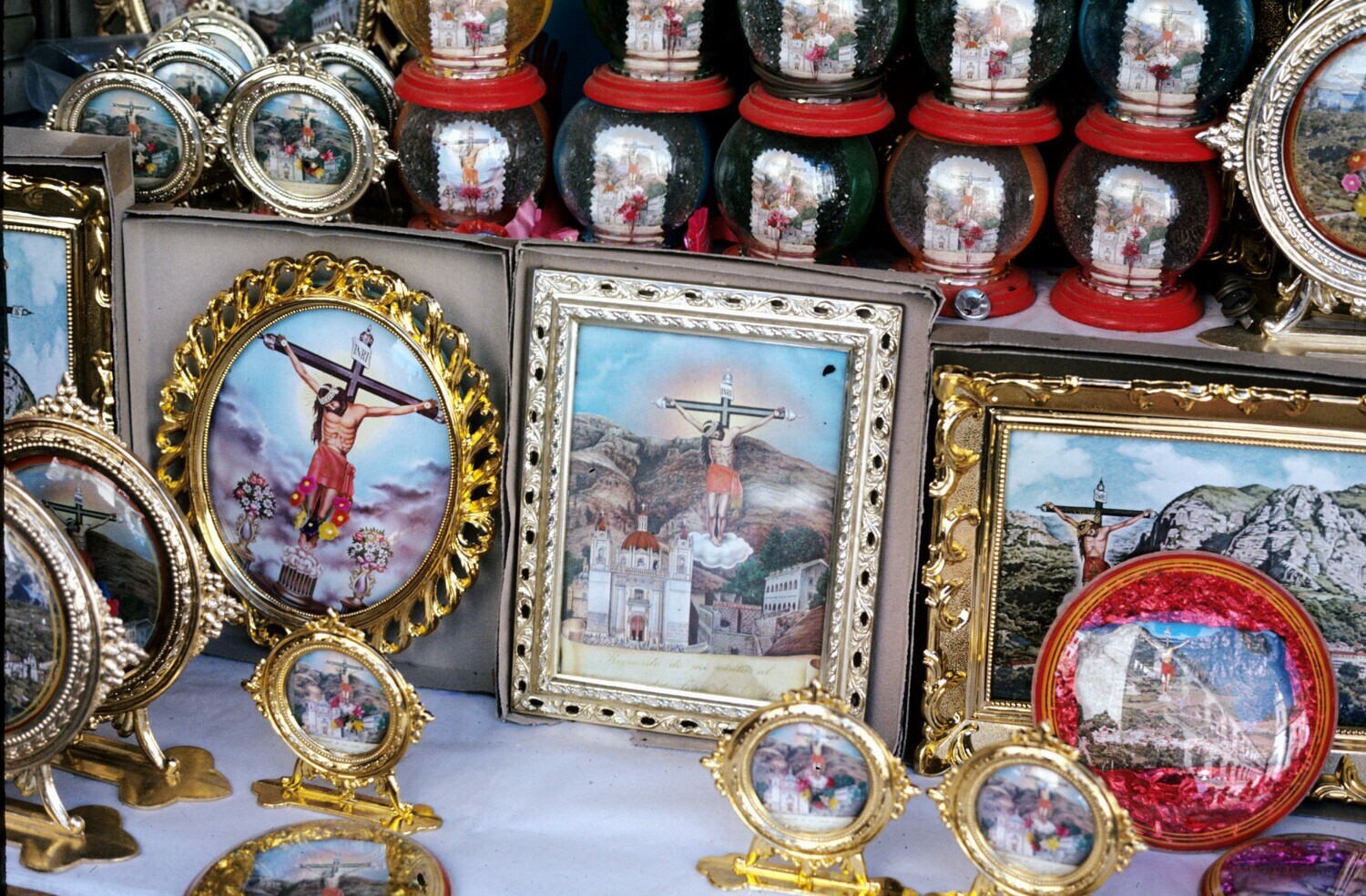votiefafbeeldingen van El Señor de Chalma in etalage