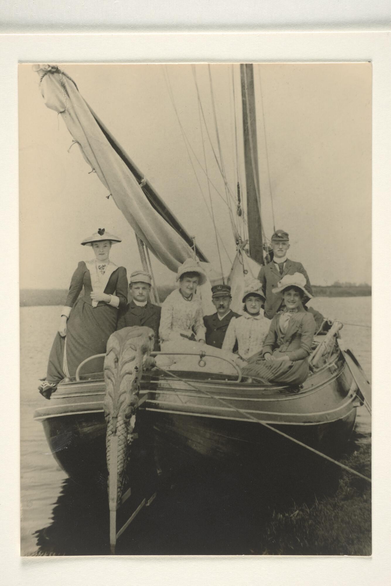 Groepsfoto van de families Pyttersen en Wouda aan bo...