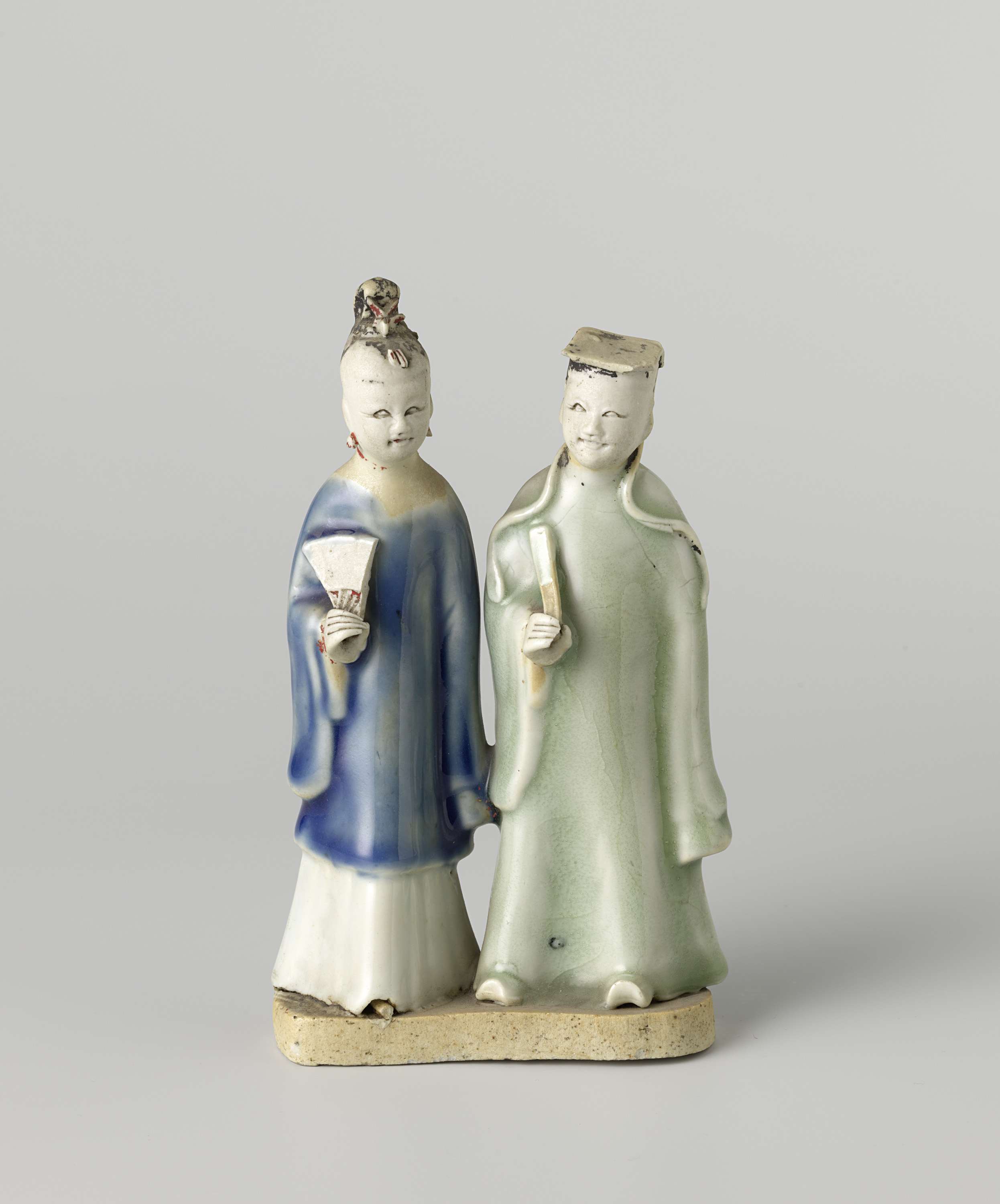 Figure of a standing man and woman with a fan