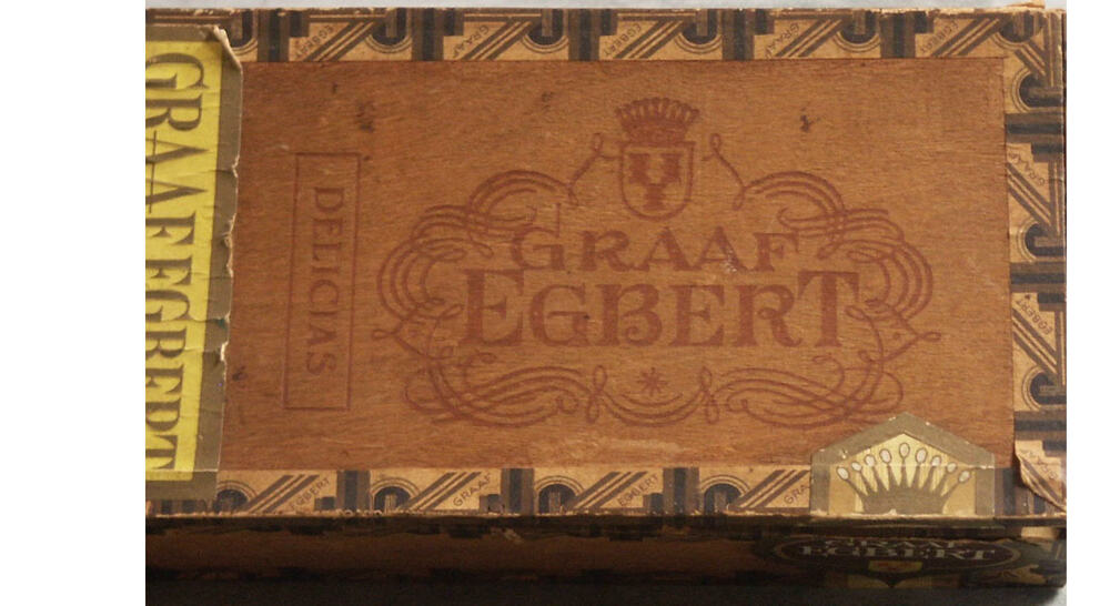 sigarenkist van hout met stempel en etiket Graaf Egb...