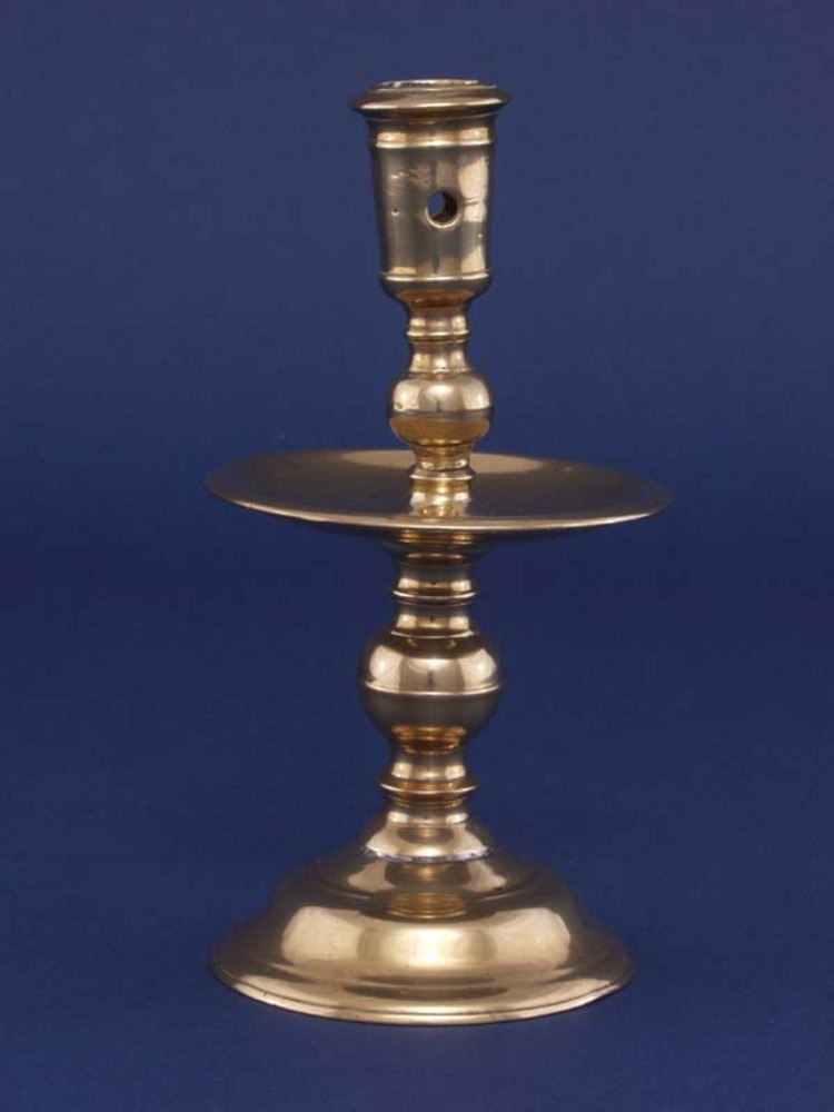 schijf- of kraagkandelaar van messing uit de 17e of ...