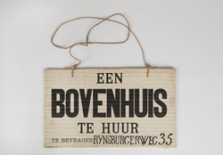 Uithangbord 'Een bovenhuis te huur te bevragen R...
