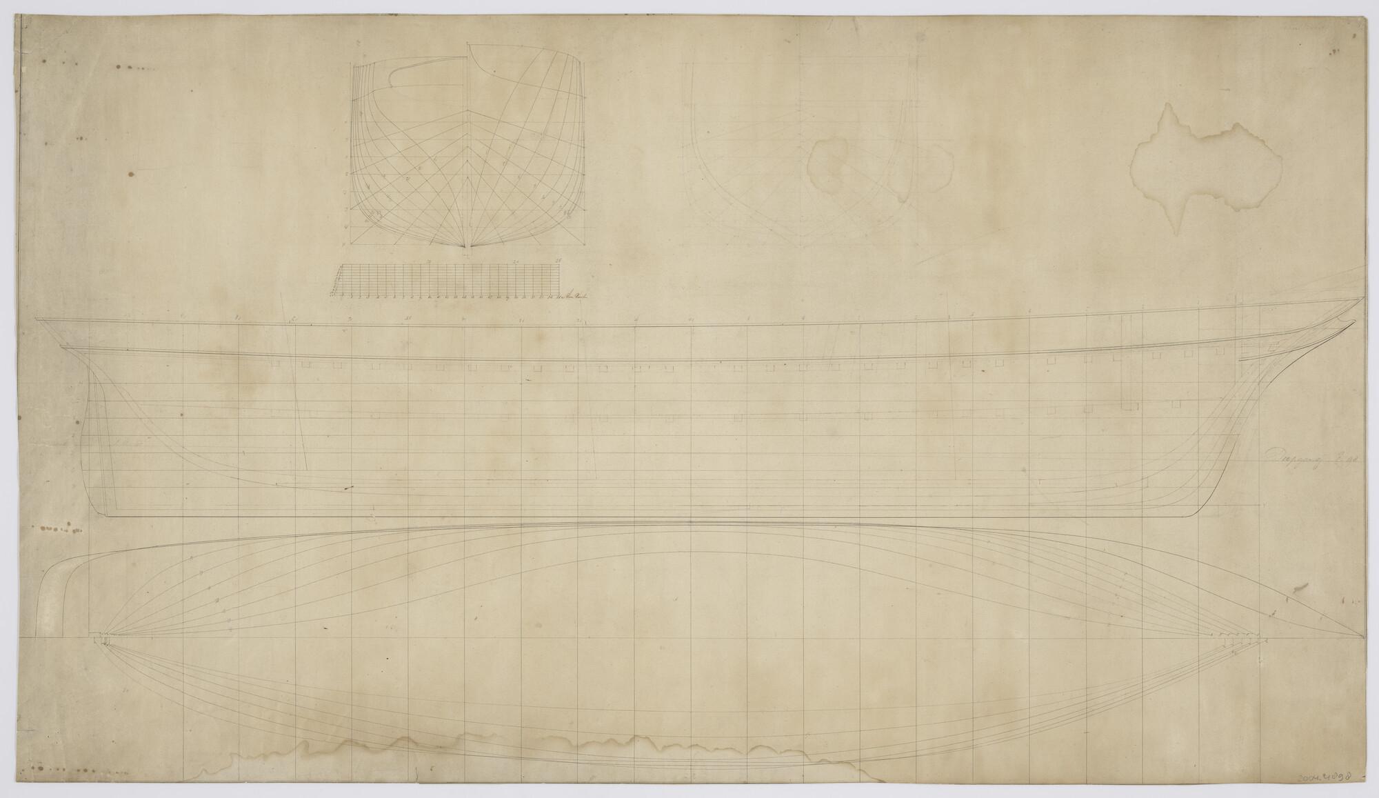 Lijnenplan van de schoener 'Maria Johanna'