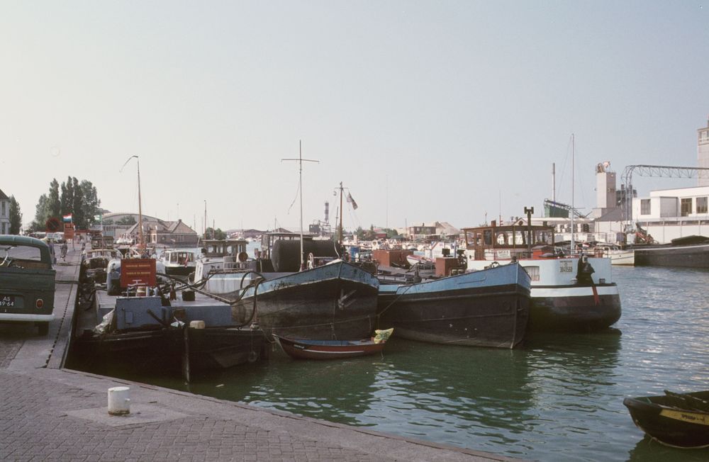 Afgemeerde binnenvaartschepen in de Vissershaven