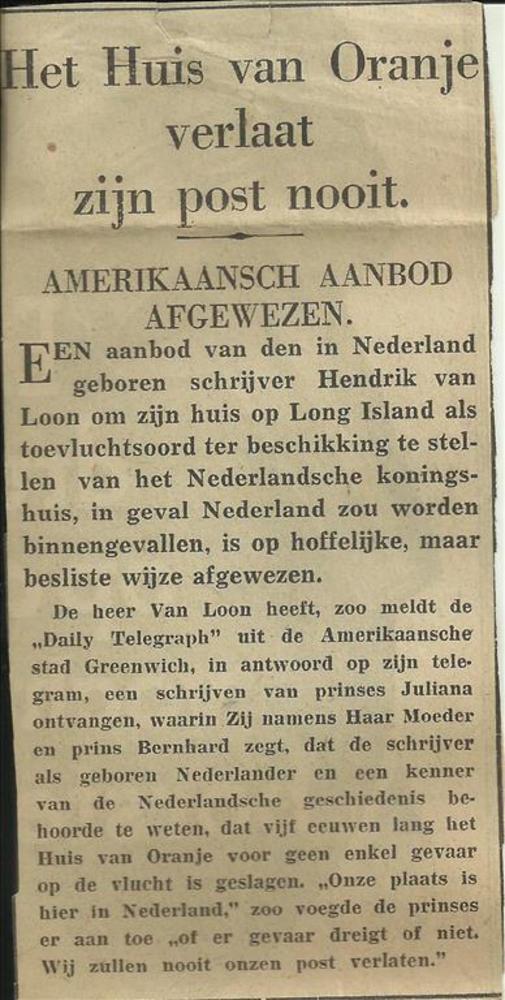 Het huis van Oranje verlaat zijn post nooit, Amerika...