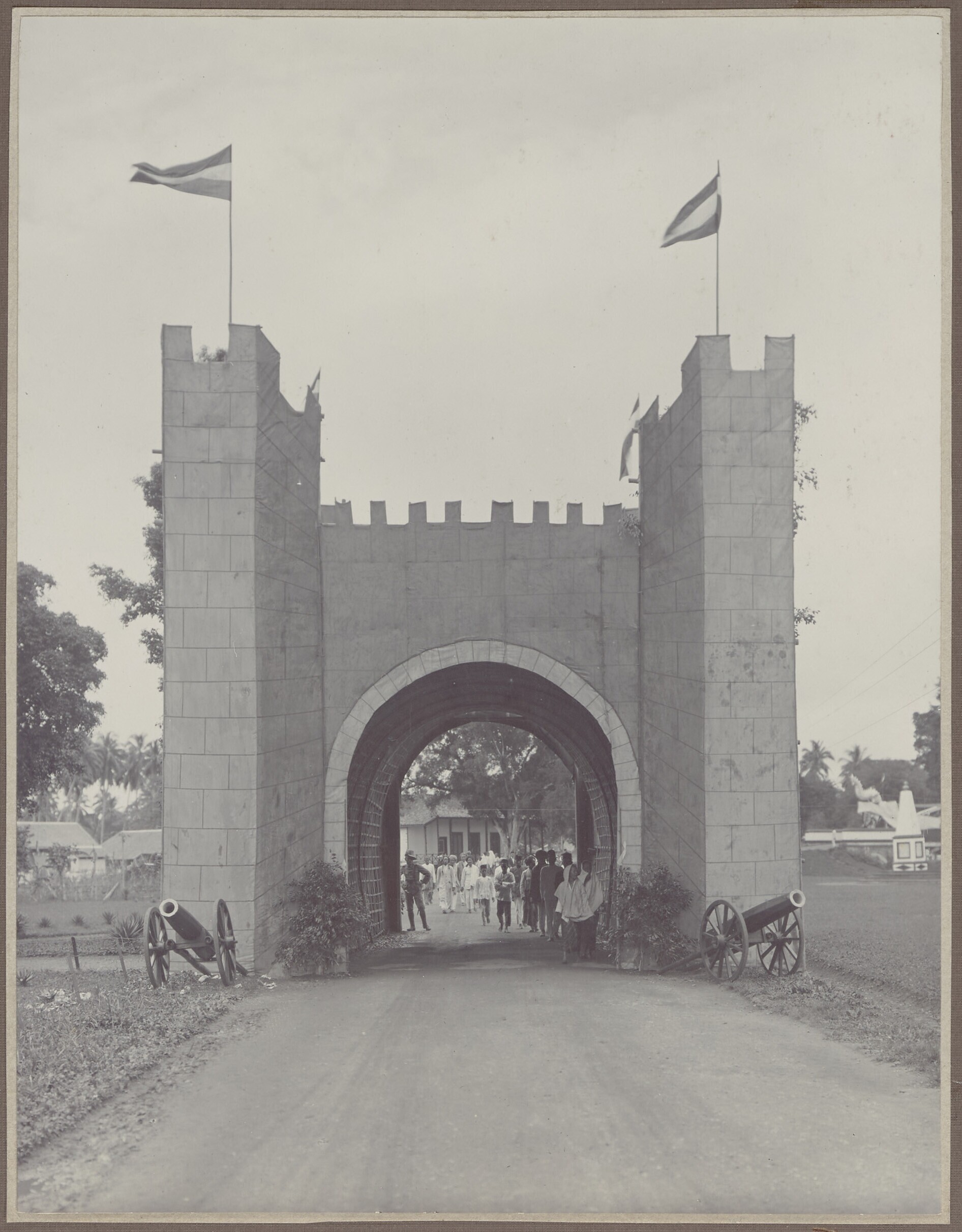 Triomfpoort opgericht te Kandangan ter gelegenheid v...