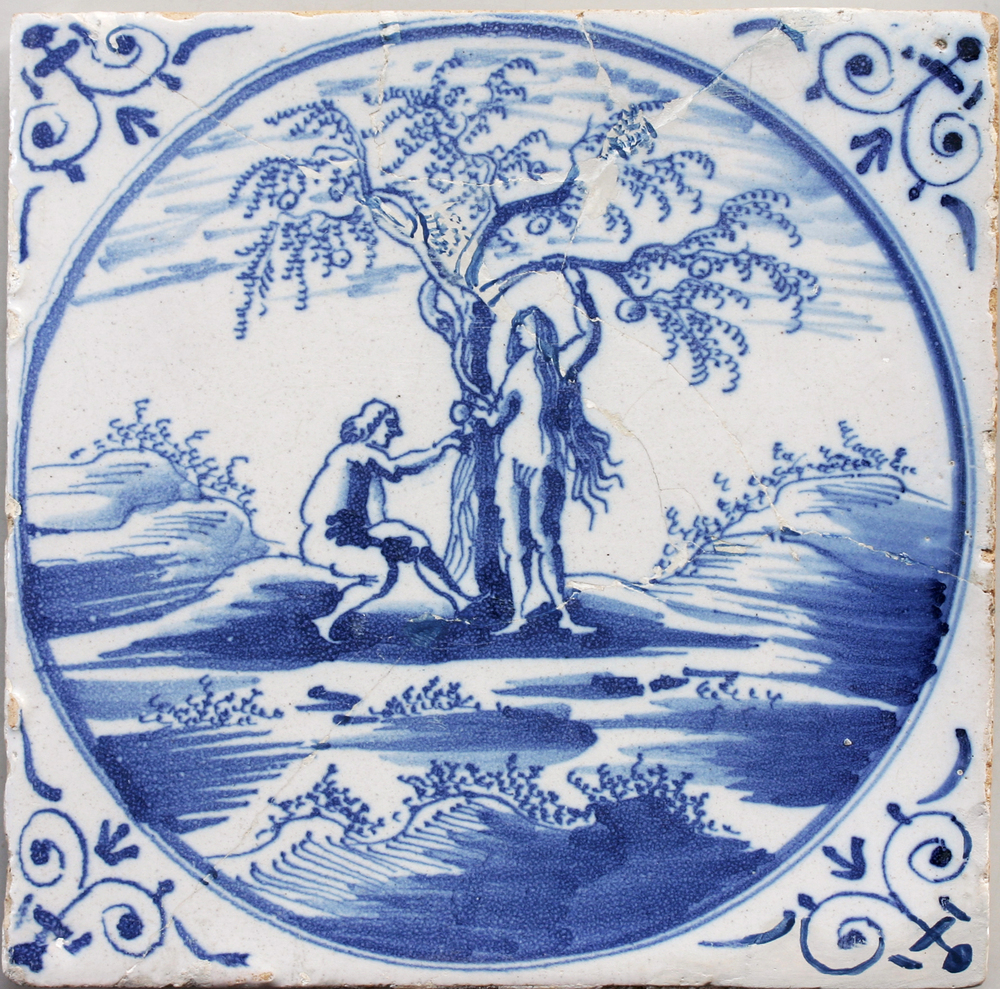 tegel van keramiek met tinglazuur, voorstellende: De...