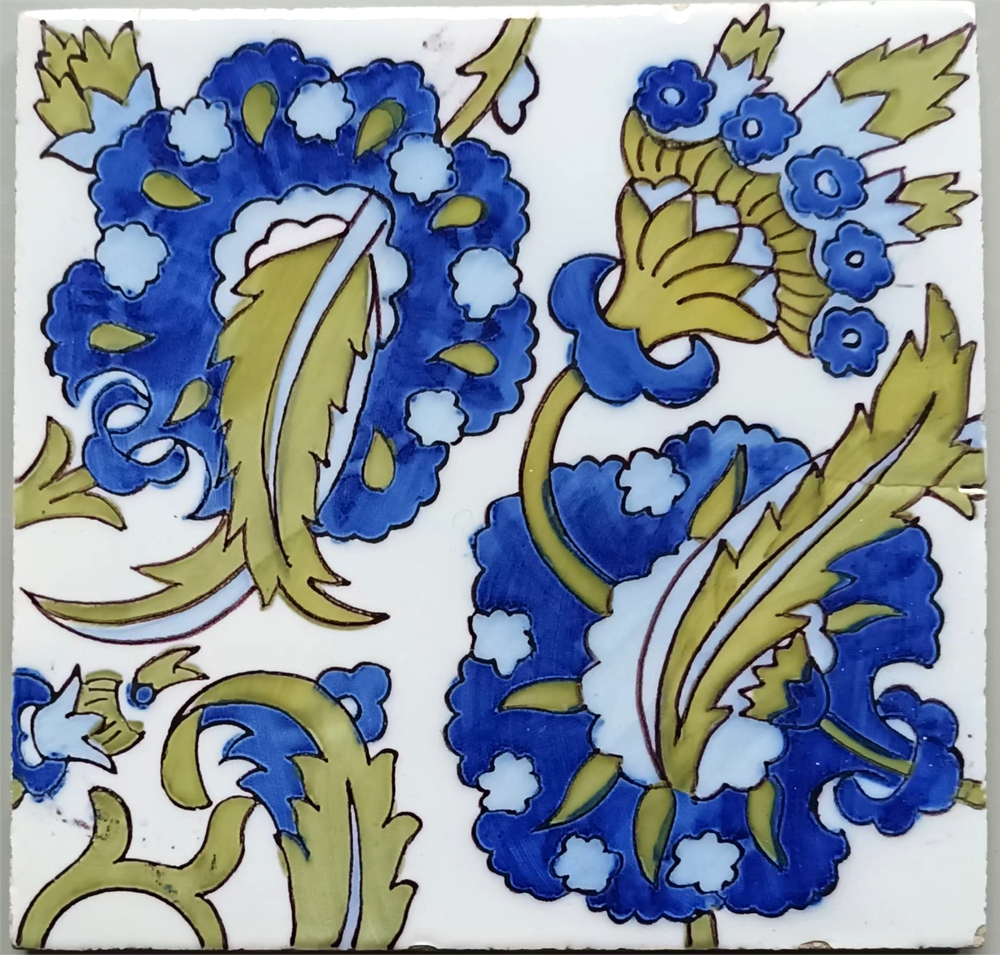 tegel van keramiek, gesjabloneerd, voorstellende: mu...