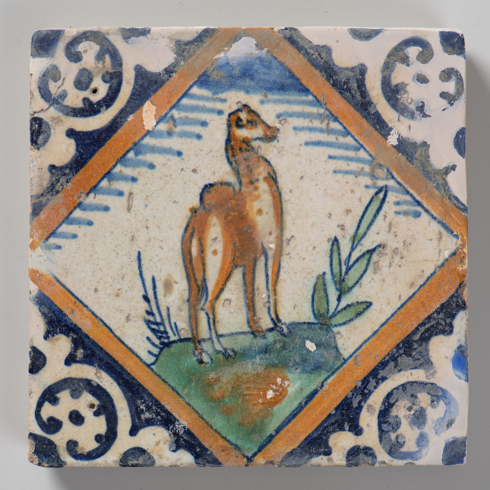 tegel van keramiek met tinglazuur, voorstellende: Lo...