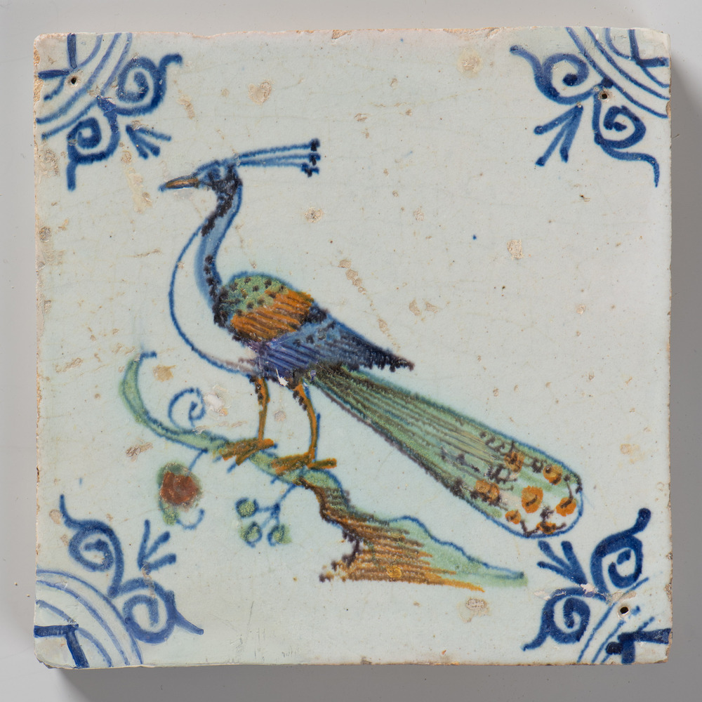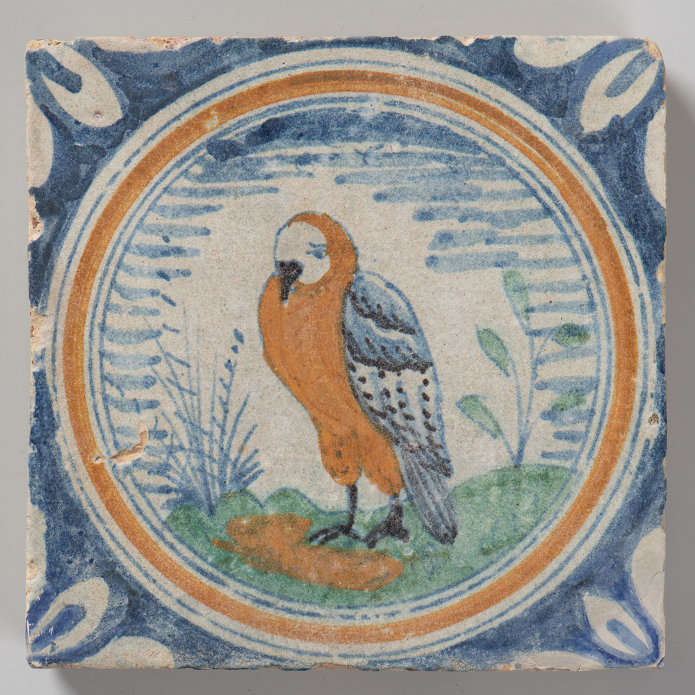 tegel van keramiek met tinglazuur, voorstellende: pa...
