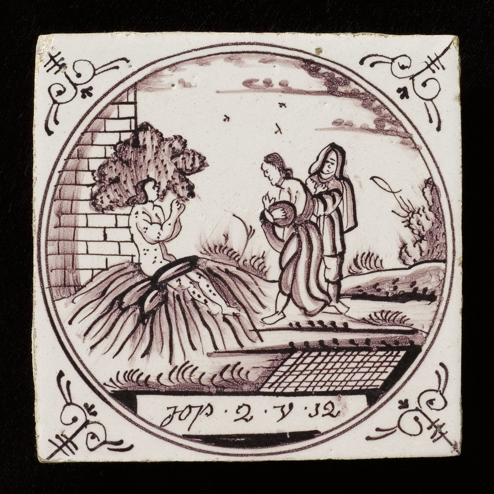 tegel van keramiek met tinglazuur, voorstellende: Ab...
