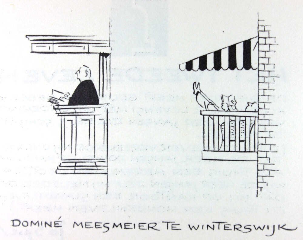 Illustratie door Jo Spier van een dominee op de kans...